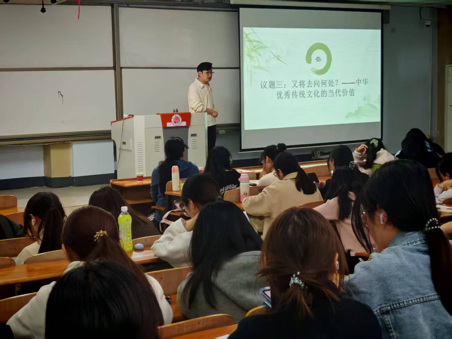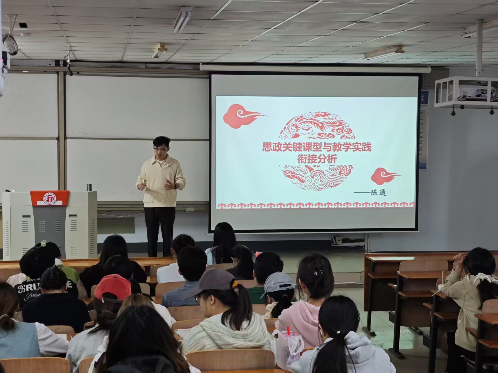 本次讲座由坊主陈通老师主讲。陈老师首先系统阐述了合格思政教师应具备的核心素养与能力,特别强调"思政教师不仅是知识的传授者,更是学生价值观的塑造者",从自身教学经验和具体案例出发,教导坊员如何在当今时代成为一名合格的思政课教师。接着,陈通老师以“正确认识中华传统文化”为主题,以省优质课案例为切入点,强调思政课程应注重传统文化的现代价值挖掘,通过议题、案例、视频等“活泼灵动”的教学形式激发学生学习兴趣。陈老师从教学案例、教学方法、师生互动等多个方面来展现如何上好一节思政课。同时,陈老师注重培养学生“民族自源感、自尊心、自信心”,引导学生运用理论知识分析现实问题,增强对中华文化的认同感。陈老师还分享了如何通过案例分析、跨学科融合等策略,将传统文化与社会主义核心价值观有机结合,提升课堂实效性。