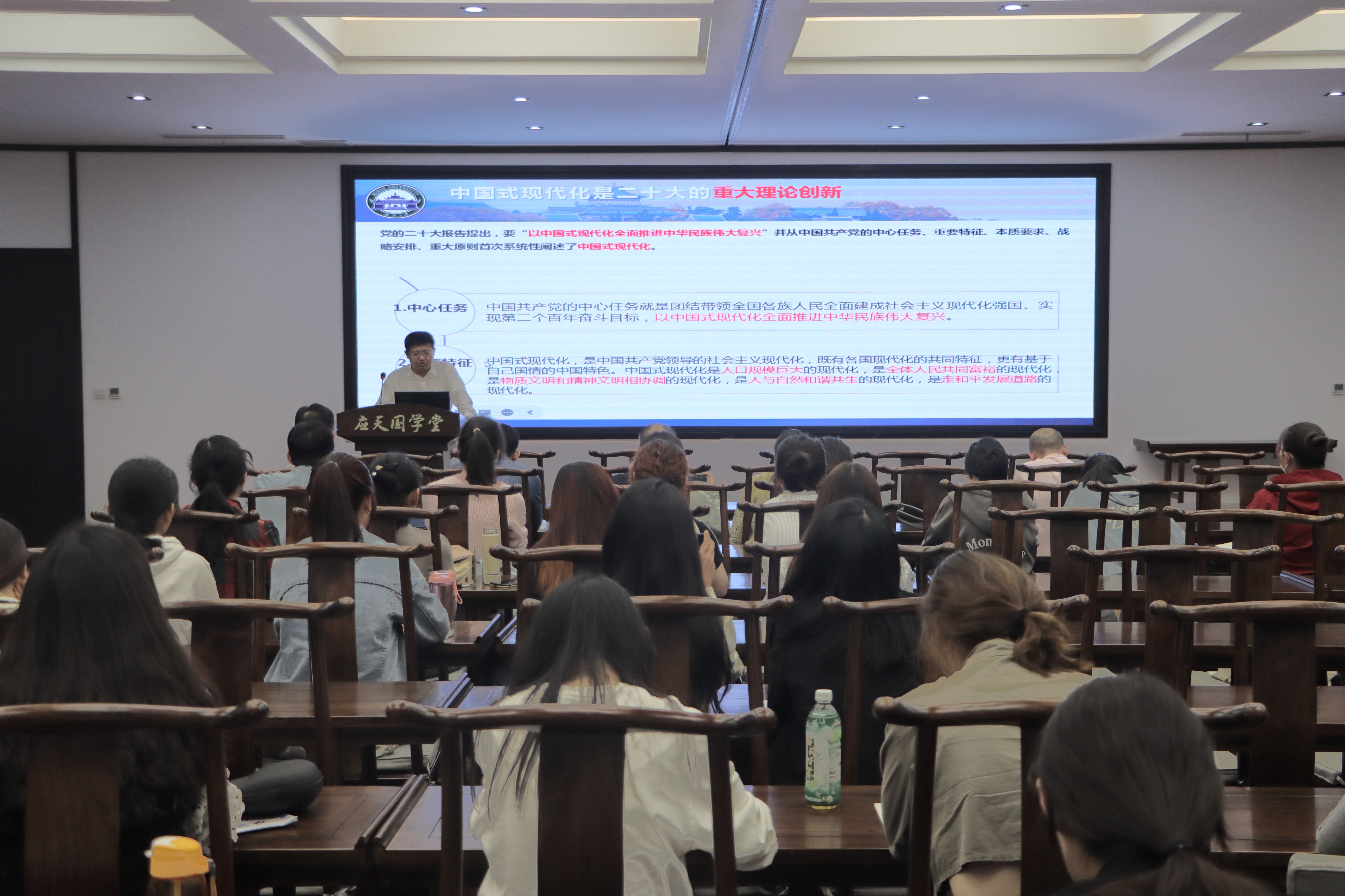 项久雨以中国式现代化创新为主线,着重从二十大的重大理论创新、中国式现代化三大体系创新、中国式现代化创新的未来展望等三个方面进行了详细阐释。他认为,以中国式现代化推进中华民族伟大复兴是一个融合文化、探索比较优势、创新体制机制的历史过程,具有内源生长性和外延适用性特点。他还从历史和现实等多个角度深刻阐述了新时代如何理解和实现中国式现代化的理论创新问题。整场报告站位高远,视野广阔,内容丰富,逻辑严谨,既有理论高度,又有实践深度,为广大师生进行中国式现代化研究提供了全新的思路和方法。