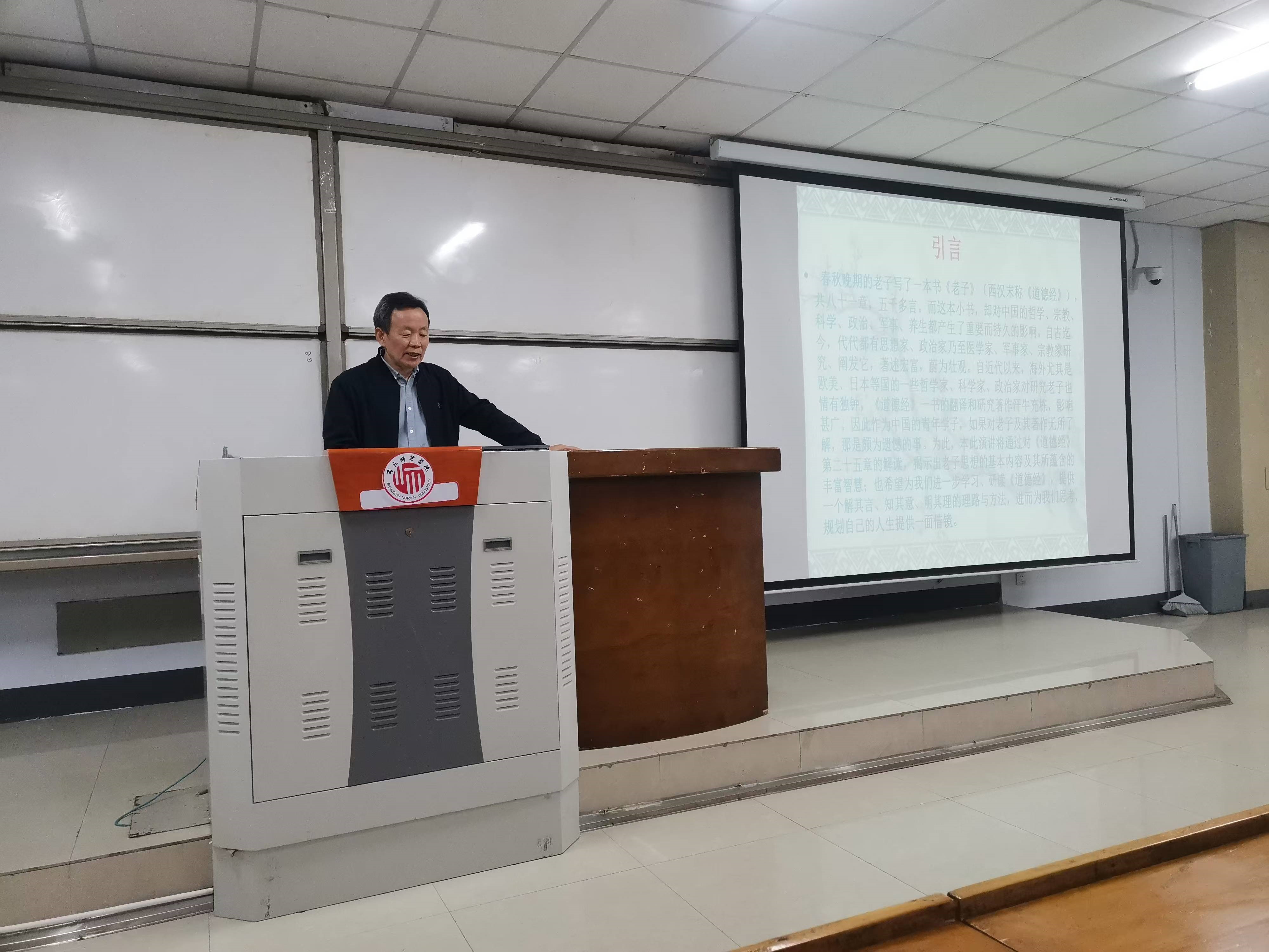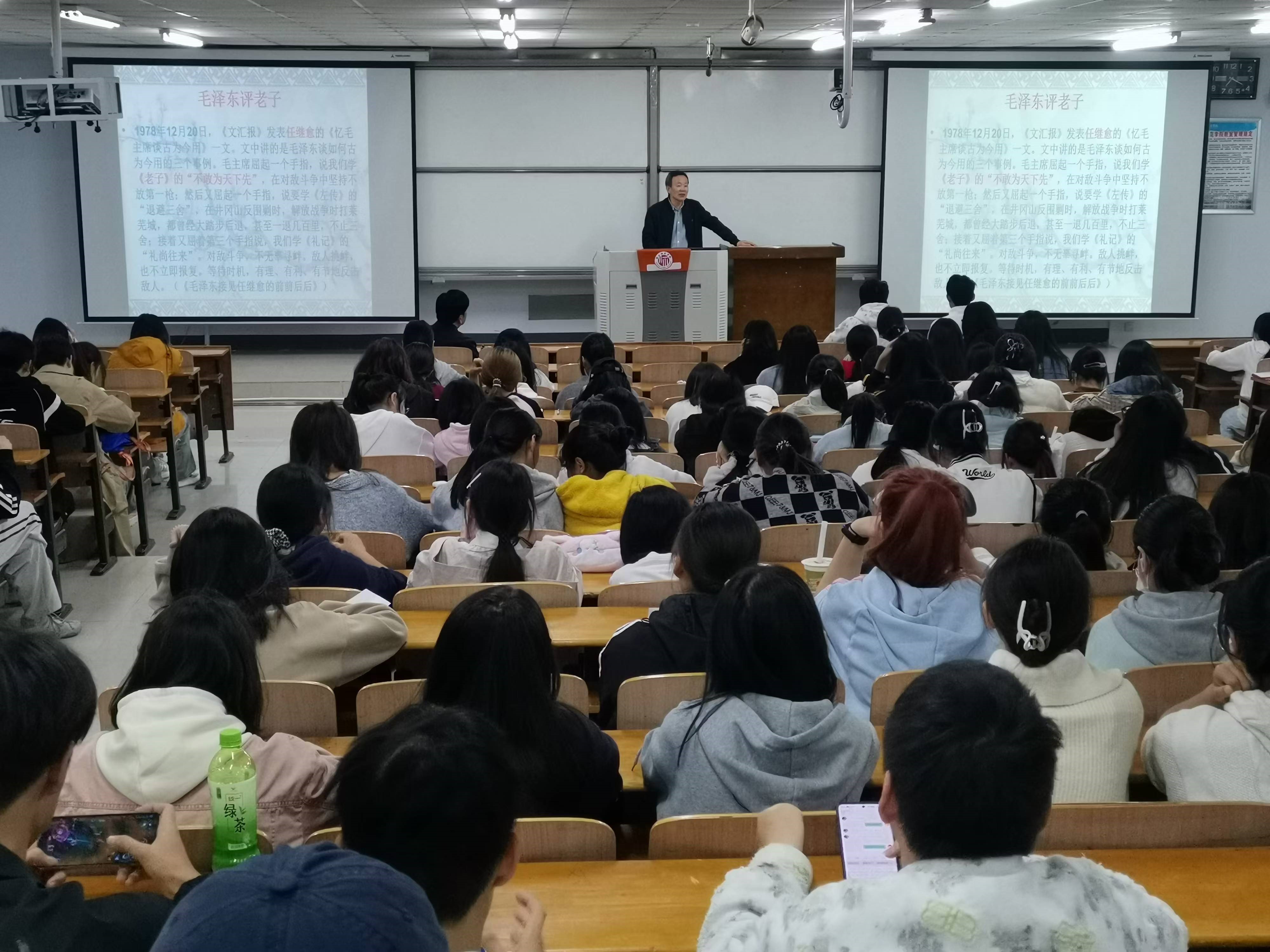 高秀昌教授以《今天我们怎样读〈道德经〉》为题,以《道德经》第二十五章为例,从“世界观、人生观、价值观、审美观和生死观”等方面给同学们做了一场精彩学术报告,该报告为同学们学习《道德经》提供了不同的视域,为将来从事《道德经》的研究提供了方法、奠定了基础。(撰稿:黄登科;一审:薛明珠;二审:孙喆;三审:龚志宏)