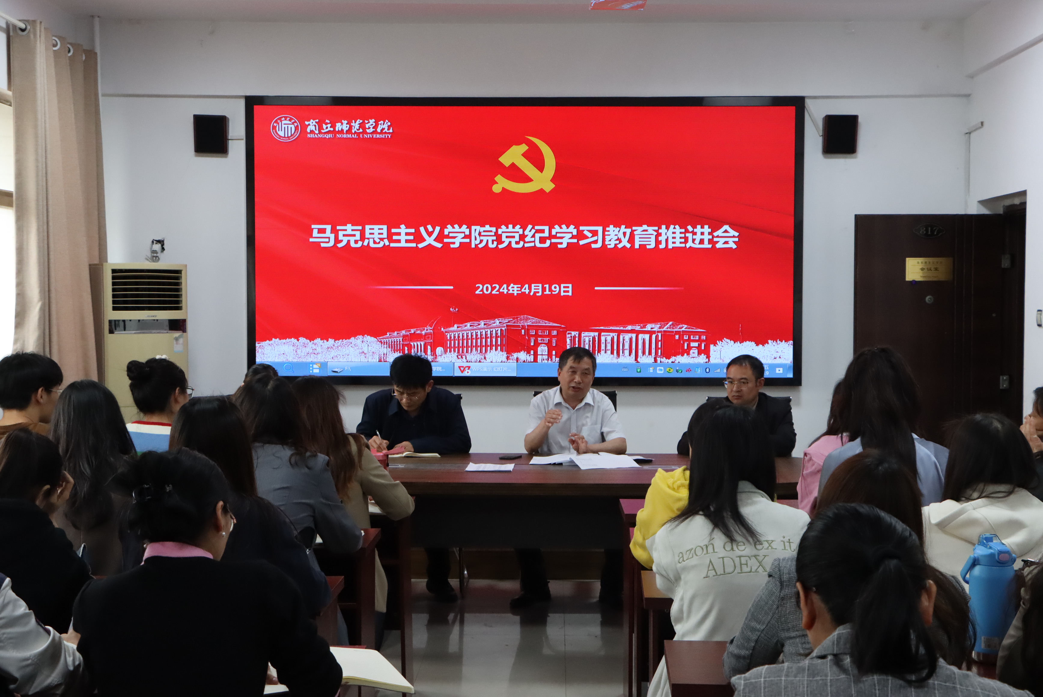 4月19日,beat365正版唯一官网在梁园校区应天楼817会议室召开党纪学习教育推进会,beat365正版唯一官网全体师生党员参加。