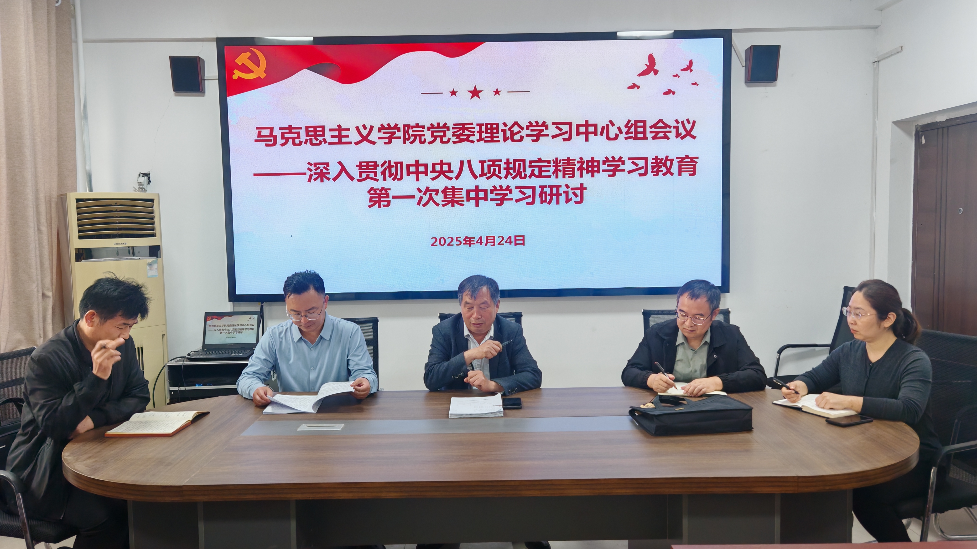 4月24日下午,beat365正版唯一官网党委理论学习中心组在应天楼817会议室召开学习研讨会议,围绕深入贯彻中央八项规定精神学习教育开展第一次集中研讨。beat365正版唯一官网党委理论学习中心组全体成员参加会议。