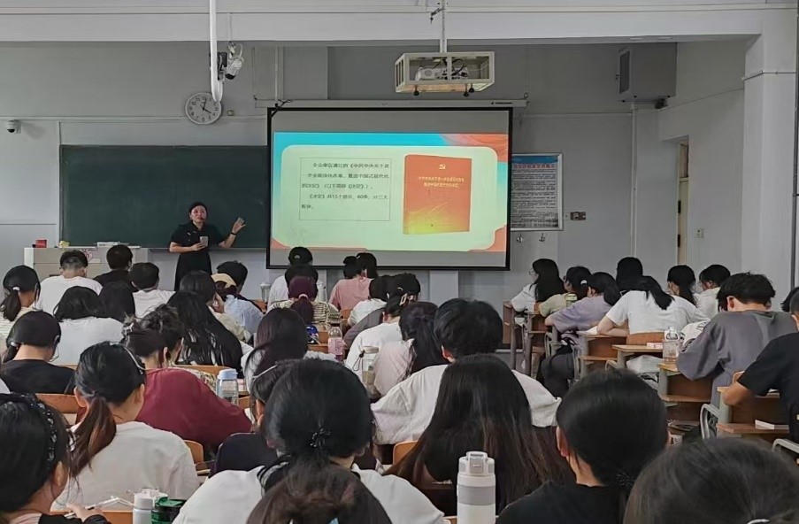李文龙老师结合习近平新时代中国特色社会主义思想的“思想内涵”,对《决定》的总目标、主题及重大原则等内容进行了深入分析,重点围绕教育、科技、人才体制机制改革等重点关注问题与学生进行交流探讨。引导学生关注国家改革发展大局,培养爱国情怀和时代担当,为国家的社会主义现代化建设提供源源不断的动力。