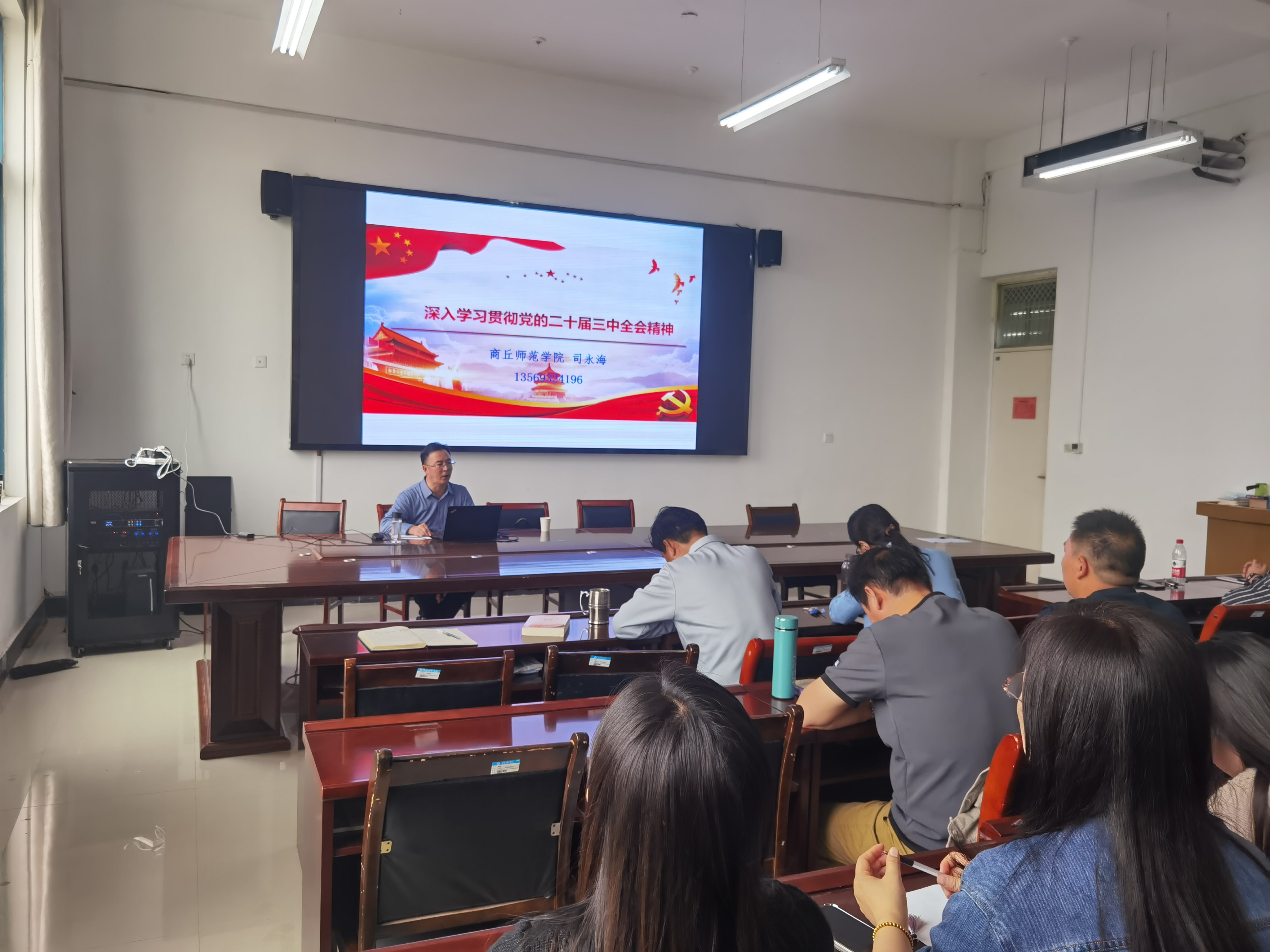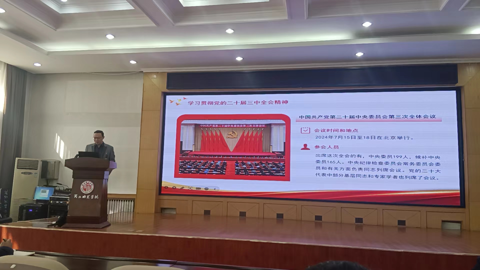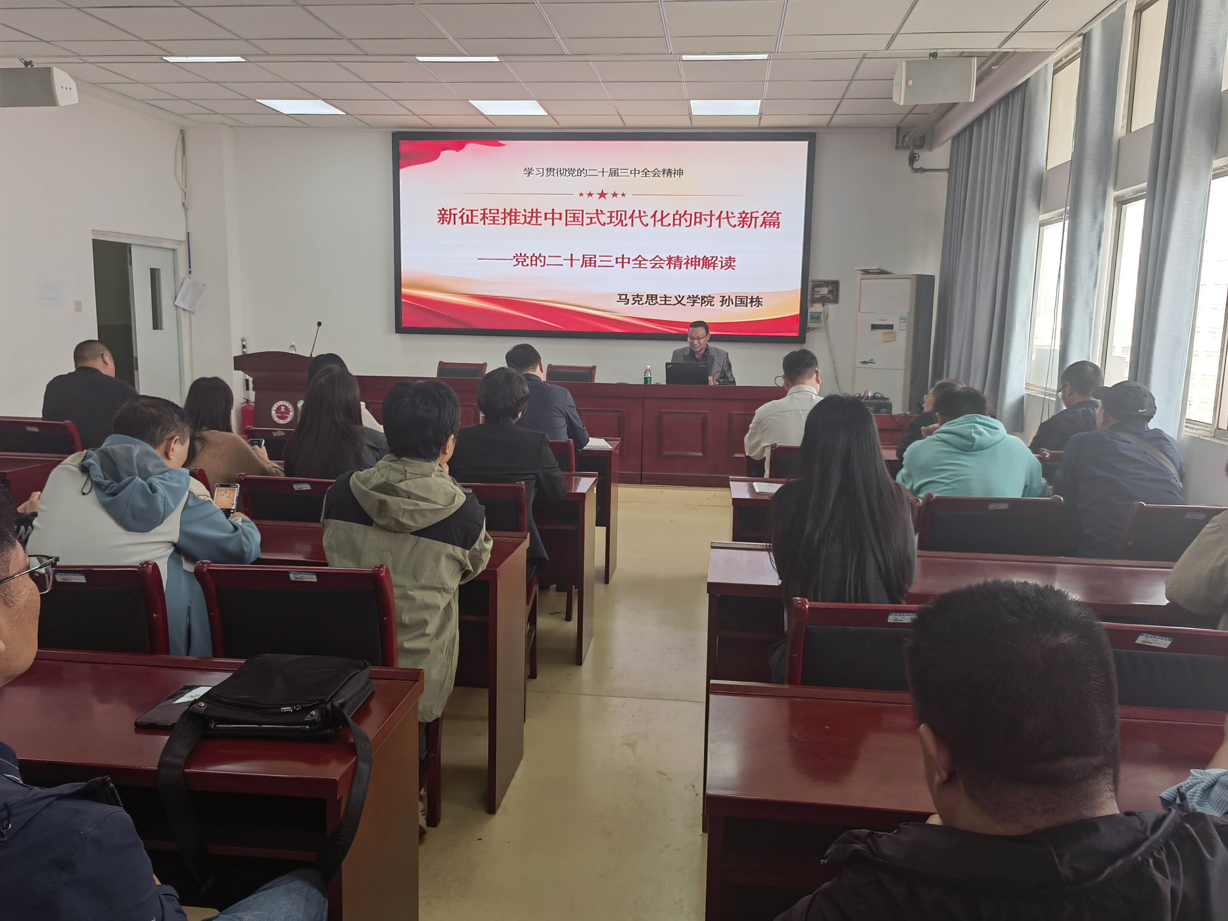 宣讲团成员、beat365正版唯一官网马克思主义基本原理教研室主任孙国栋博士以《新征程推进中国式现代化的时代新篇——党的二十届三中全会精神解读》为题,分别为经济管理学院师生和图书馆党总支、后勤服务中心党总支作党的二十届三中全会精神理论宣讲。宣讲分为三个部分:改革开放以来十次“三中全会”的系统梳理;党的二十届三中全会精神的主要内容;根据工作实际贯彻落实党的二十届三中全会精神。