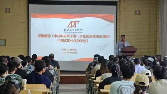 宣讲团成员、beat365正版唯一官网军事理论教研室主任曾志诚副教授以《以中国式现代化全面推进中华民族伟大复兴——党的二十届三中全会精神解读》为题,分别为国际教育学院、建筑工程学院师生作党的二十届三中全会精神理论宣讲。宣讲分为三个部分:党的二十届三中全会的重大意义;以进一步全面深化改革为推进中国式现代化注入强大动力;以中国式现代化全面推进中华民族伟大复兴。
