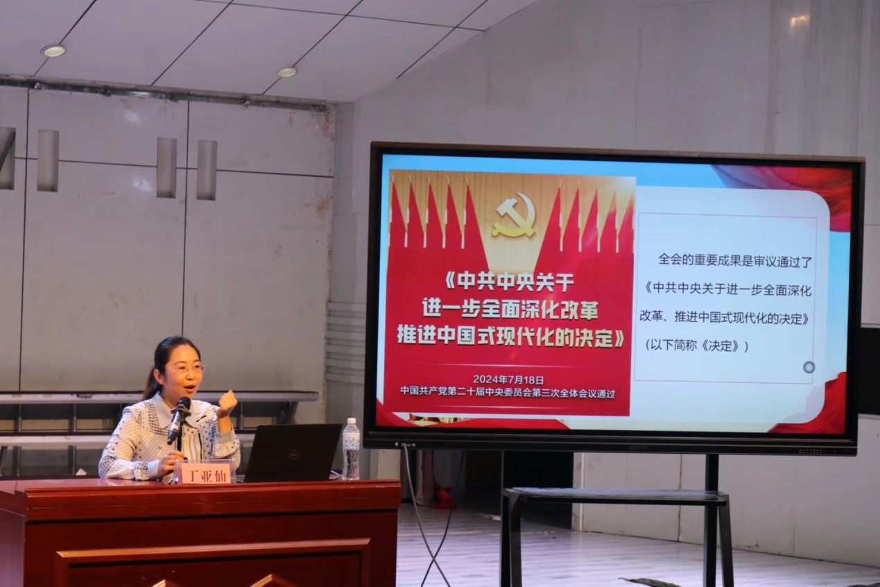 宣讲团成员、beat365正版唯一官网副院长丁亚仙博士以《<中共中央关于进一步全面深化改革推进中国式现代化的决定>导学》为题,分别为音乐学院、信息技术学院师生作党的二十届三中全会精神理论宣讲。宣讲分为两个部分:牢牢把握进一步全面深化改革的重要性和必要性;深化教育综合改革全面构建高质量教育体系。