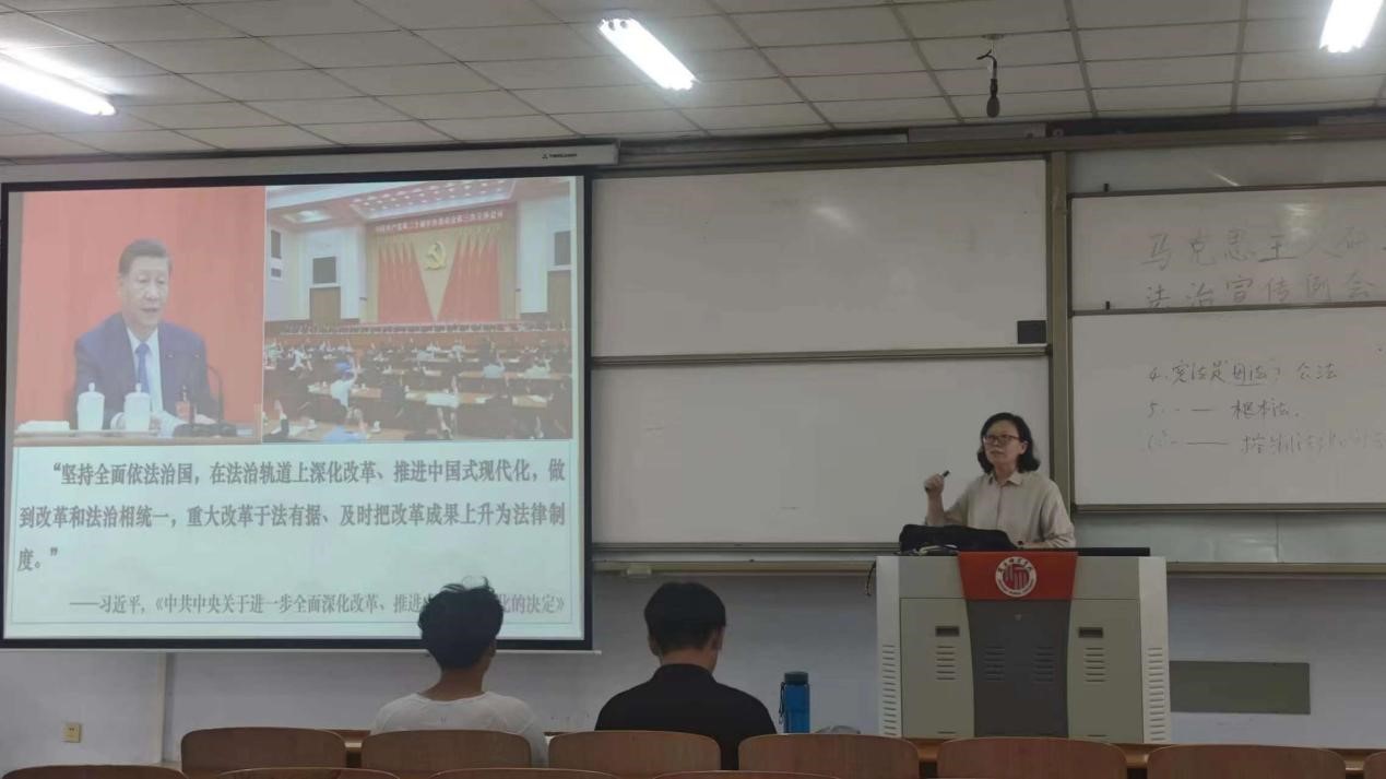 李彦华老师结合《思想道德与法治》中“不断提升思想道德和法治素养”的内容,对《决定》的第九部分“完善中国特色社会主义法治体系”进行了深刻阐述,引导学生正确认识法律和道德是调节人们思想行为、协调人际关系、维护社会秩序的重要手段;法律是准绳,任何时候都必须遵循,道德是基石,任何时候都不可忽视;法治在国家治理中具有固根本、稳预期、利长远的作用。