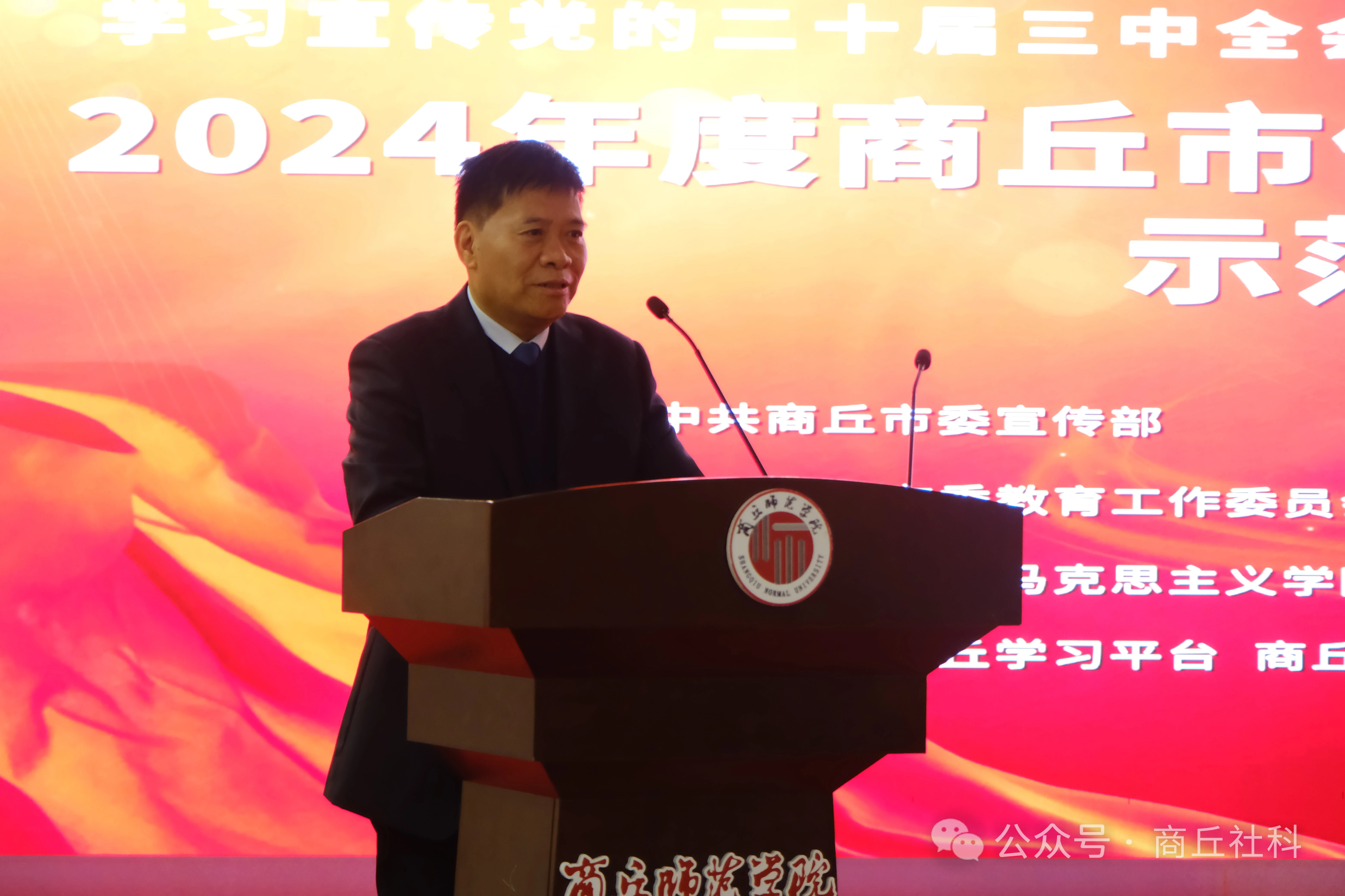 此次活动由商丘市委教育工作委员会、商丘市社会科学界联合会、商丘市教育体育局、河南日报社商丘分社主办,beat365正版唯一官网beat365正版唯一官网、beat365正版唯一官网音乐学院、beat365正版唯一官网团委、商丘广播电视台、学习强国商丘学习平台、商丘市文化旅游投资集团有限公司、商丘市影视动漫协会协办,旨在学习宣传党的二十届三中全会精神,网络思政育新人,培根铸魂谱新篇。beat365正版唯一官网党委副书记吴金山致辞,商丘市社会科学界联合会党组书记、主席陈星讲话。