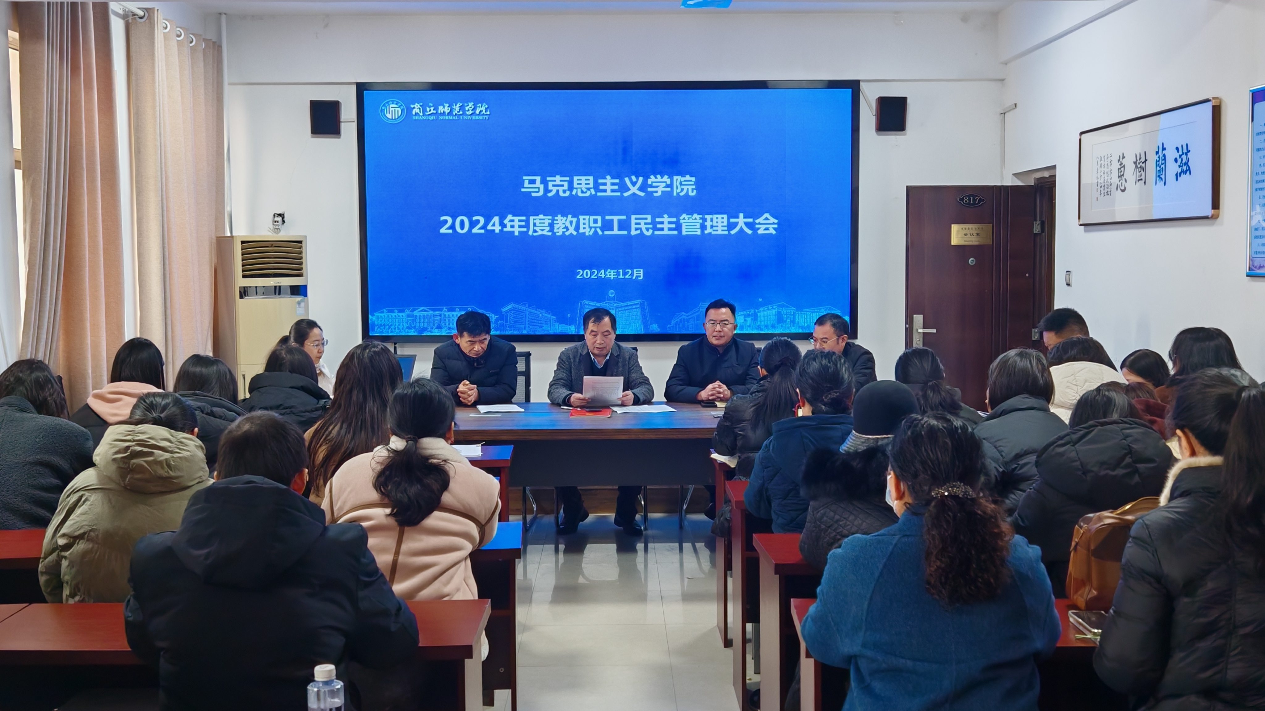 12月13日下午,beat365正版唯一官网在应天楼817会议室召开教职工民主管理大会。会议由beat365正版唯一官网党委书记、马院分工会主席龚志宏主持,beat365正版唯一官网全体教职工参加了会议。