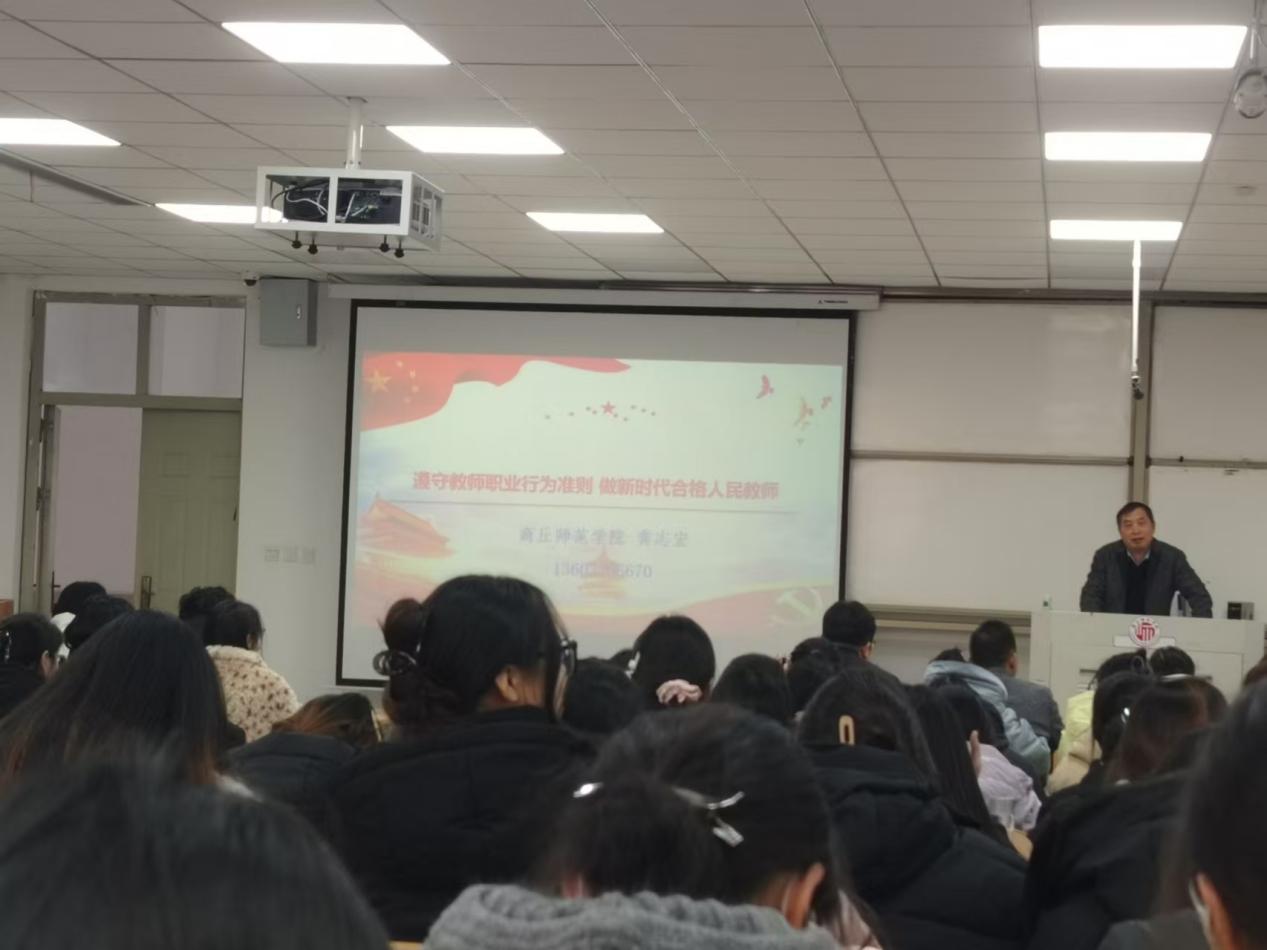 讲座由beat365正版唯一官网党委书记龚志宏主讲。他详细解读了新时代教师职业行为准则的内涵和要求,强调了教师在教育教学过程中应遵守的职业道德、教学规范和行为举止等方面的准则。在讲座中,龚志宏书记还就新时代学生如何成为一名合格的新时代人民教师提出教师应不断加强自身学习,提升专业素养和教育教学能力;要关爱学生,关注学生的成长和发展;要积极参与学校和社会公益事业,发挥教师的示范引领作用等建议。
