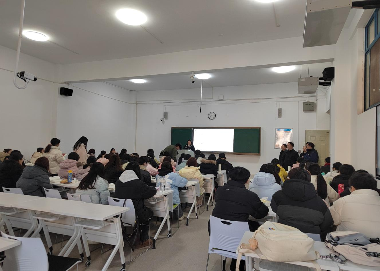 各位任课教师提前到岗、备课充分、组织有序;学生按时到课,精神状态饱满;教室教学设备运行良好。班子成员在检查中同教师与学生进行简短交流,强调要确保课堂教学质量、加强课堂教学管理。