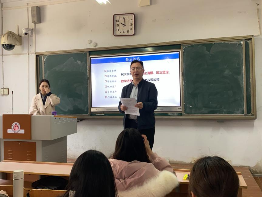 丁亚仙围绕思想政治理论课的教学目标、教学设计和教学实施三个方面进行分享。首先从方案沿革入手,深入讲解了思想政治理论课要实现立德树人的教学目标。接着从“三性一力”的好课标准,即思想性、理论性、亲和力、针对性,论述了讲好一堂思政课关键在教师。教师要用好教学辅助材料,以问题引发思考,以素材提升兴趣,以理论增强认同,结合实际灵活开展教学设计。最后从备课、授课、拓展课堂中存在的教学难题进行分析,有针对性地提出相应的解决措施来完善教学实施。