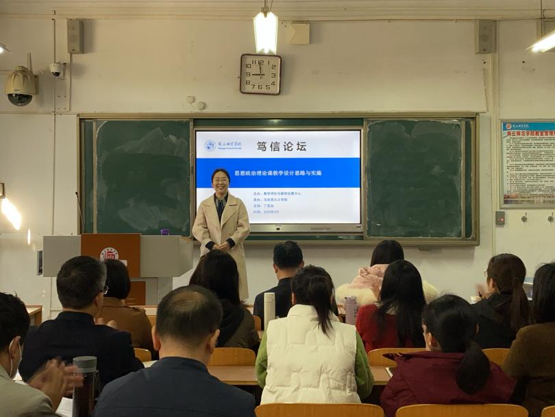 3月21日上午,由教学评价与教师发展中心主办、beat365正版唯一官网承办的笃信论坛在智圆楼120举行。beat365正版唯一官网副院长丁亚仙以《思想政治理论课教学设计思路与实施》为主题进行分享。各学院教师40余人参加了此次论坛。