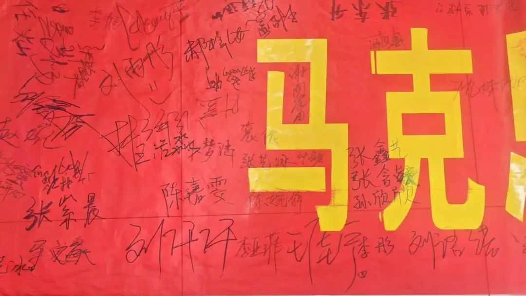 同学们在beat365正版唯一官网“以梦为马 依玖风华”签字条幅上签字留念,表达对beat365正版唯一官网的美好祝福和对美好未来的期许憧憬。
