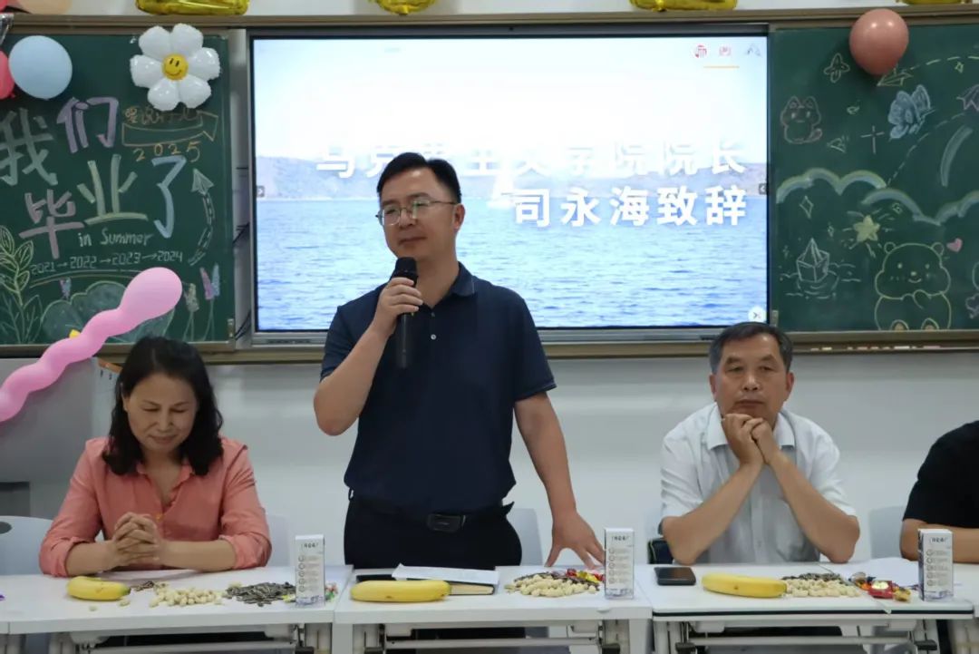 毕业班班主任文国兴、张杨,辅导员黄登科和教师代表张春芳依次发言。