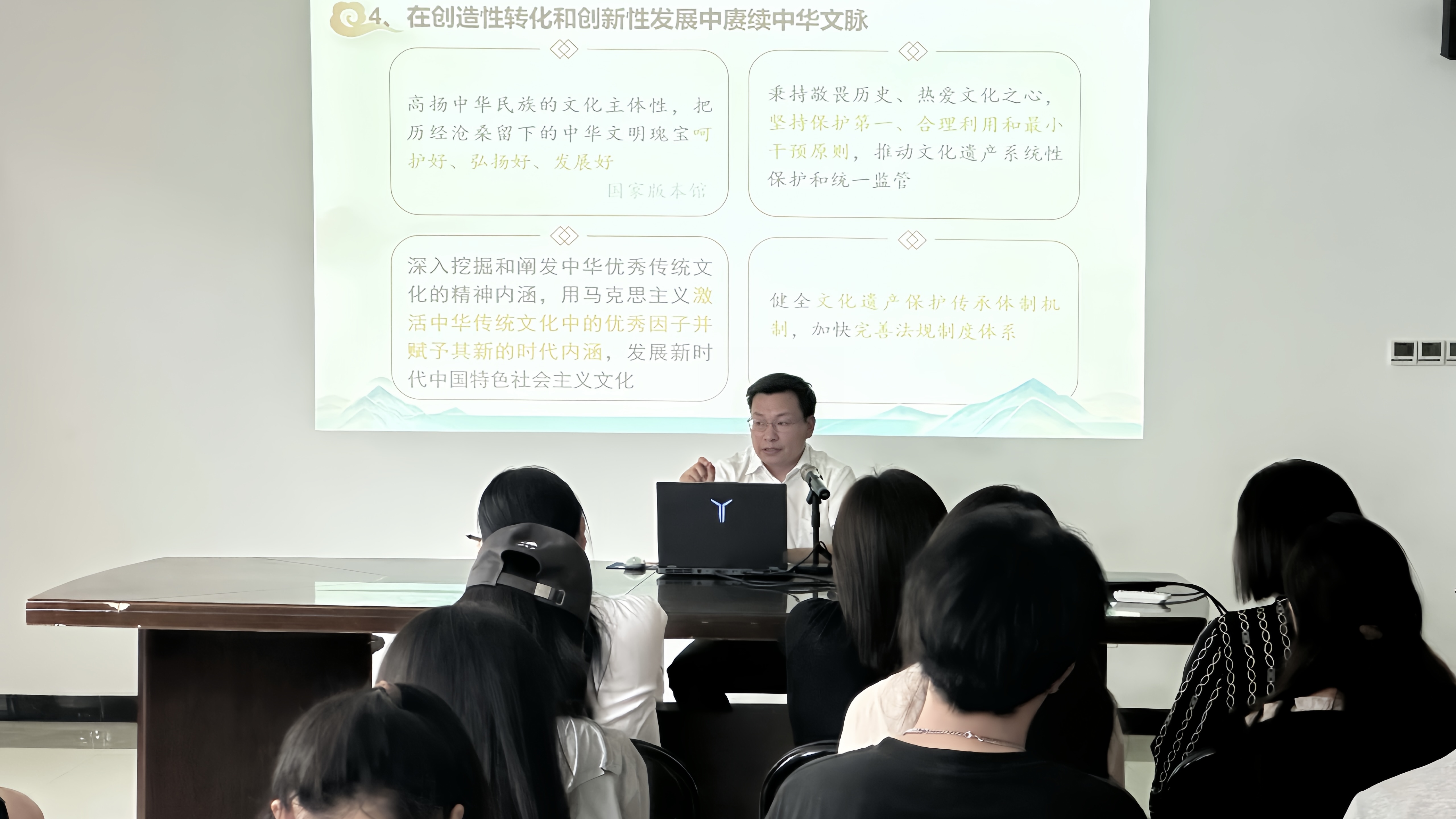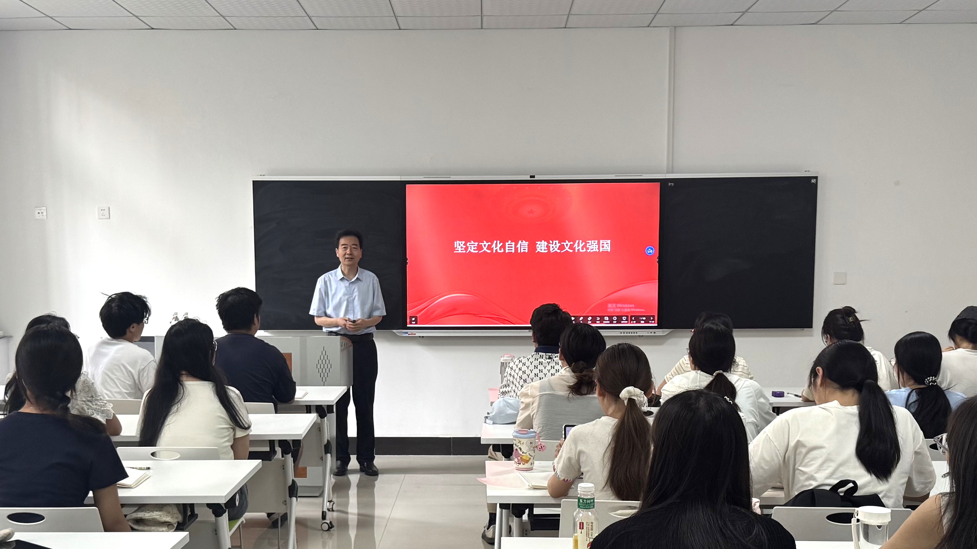 6月11日、6月13日,党委副书记、校长陈向炜分别在汉梁楼112教室、三商楼357会议室为教师教育学院和经济管理学院学生代表讲授题为《坚定文化自信 建设文化强国》的思政课。陈向炜从为什么建设中国特色社会主义文化、为什么要坚持马克思主义在意识形态领域指导地位的根本制度、为什么要用社会主义核心价值观凝心聚力、如何铸就社会主义文化新辉煌四个方面进行系统讲解,深入阐述了坚定文化自信、建设社会主义文化强国的重大意义与实践路径。他强调文化自信是一个国家、一个民族发展中最基本、最深沉、最持久的力量,文化兴国运兴,文化强民族强。青年作为国家的未来和民族的希望,要以高度的文化自觉,主动学习和传承中华文化。在坚定文化自信的同时,青年更要立足专业所长,勇做创新先锋,积极推动中华优秀传统文化创造性转化、创新性发展,为建设文化强国贡献青年力量。