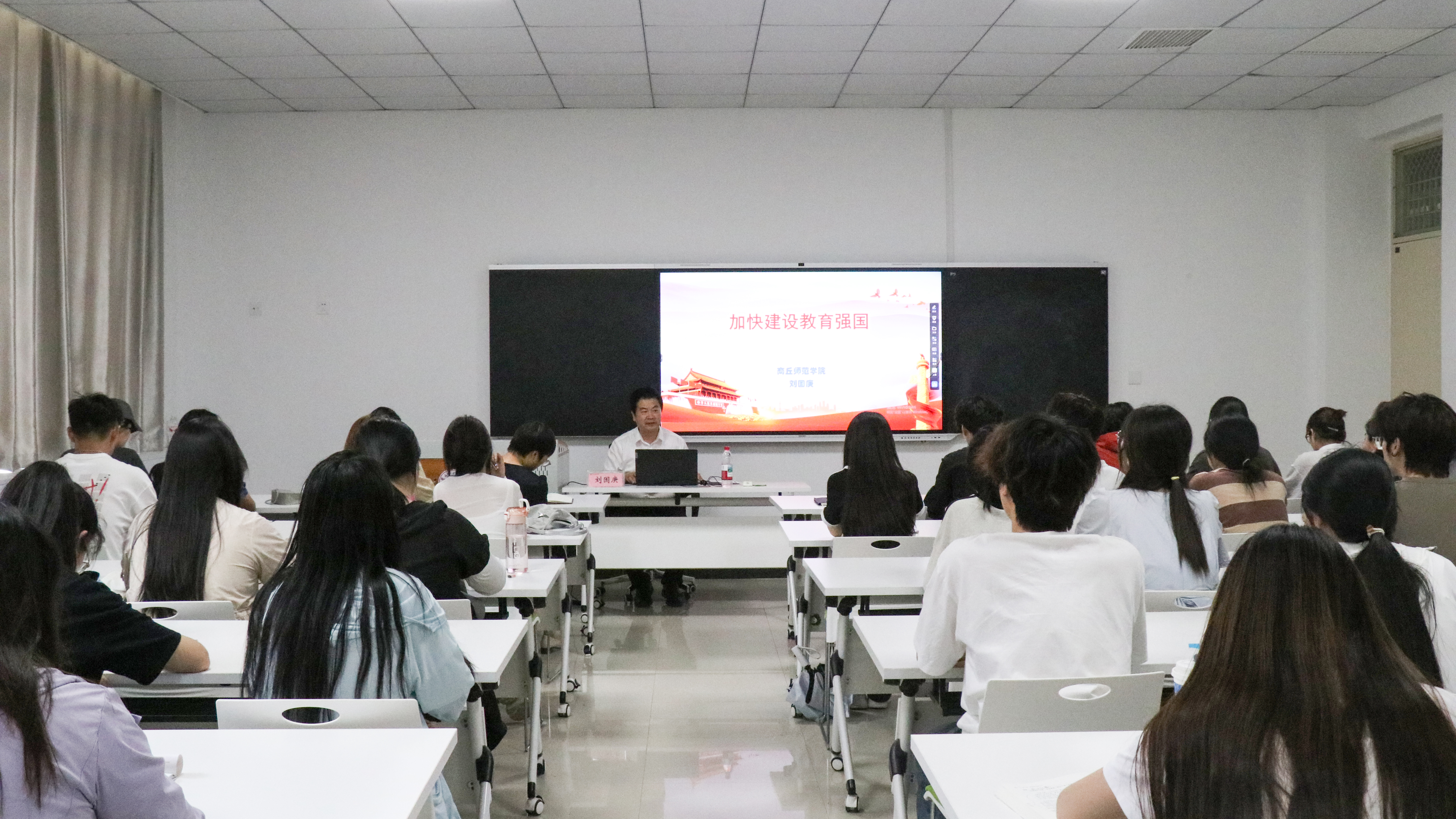 6月17日,校党委副书记刘国庚在汉梁楼112教室为宣传部学生组织代表讲授《加快建设教育强国》专题思政课。刘国庚系统阐述了教育强国建设的内容架构、战略意义、生动实践、理论特质及beat365官网发展路径。他深度解读了五次会议精神、两篇重要文章内涵、一部权威文集要义,重点阐释了习近平总书记关于教育强国建设的核心要义与实践要求。刘国庚强调,习近平总书记的重要论述深刻回答了教育的根本问题,是新时代中国特色社会主义教育发展的行动指南。建设教育强国,必须坚持党的全面领导这一“定海神针”,汇聚合力,以改革激发活力,建强师资队伍,聚焦强国复兴的根本使命。刘国庚通过回顾学校办学历程与文化传承,勉励青年学子在理论学习中强基、在参与发展中赋能、在立德树人中完善,为教育强国贡献青春力量。