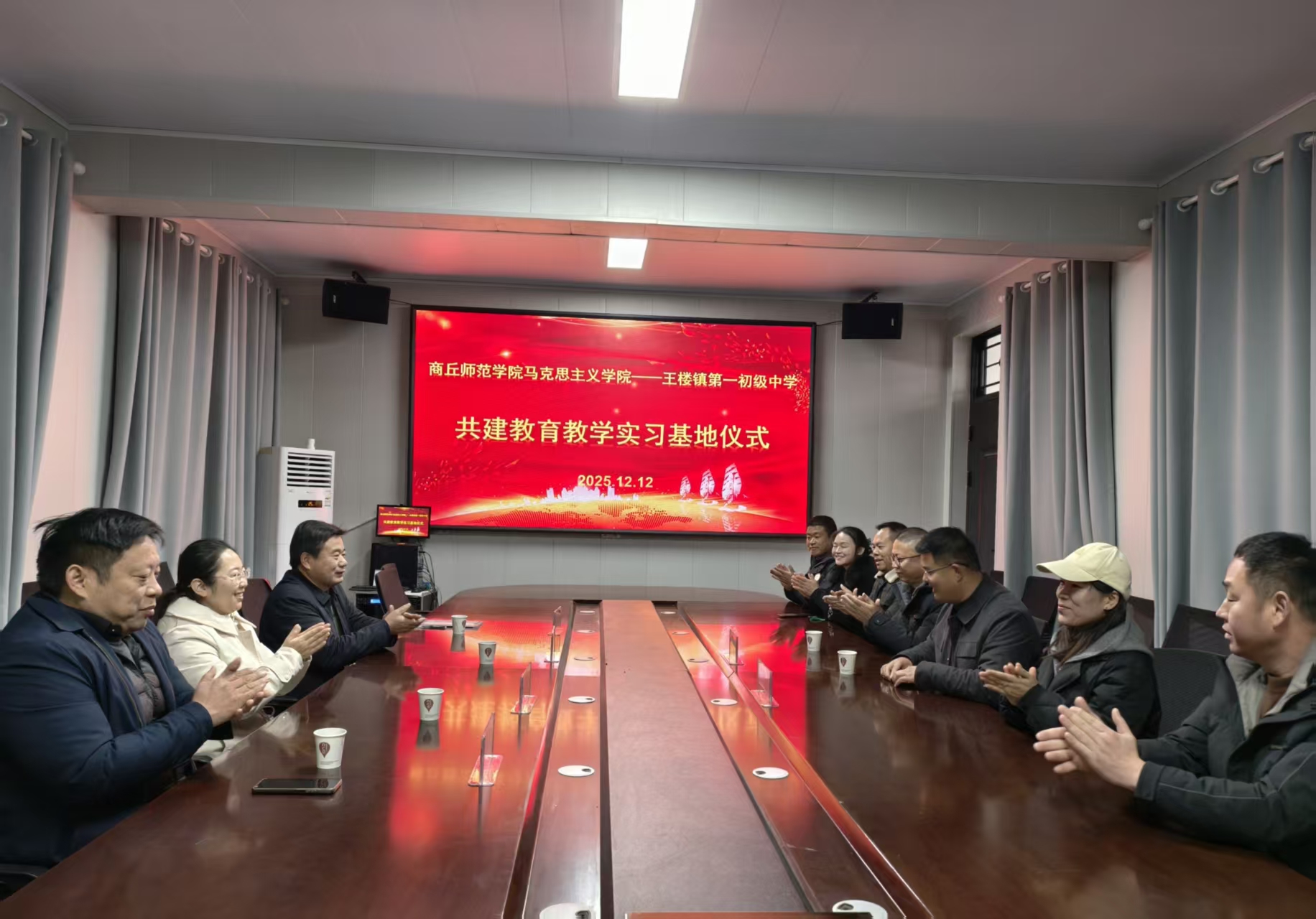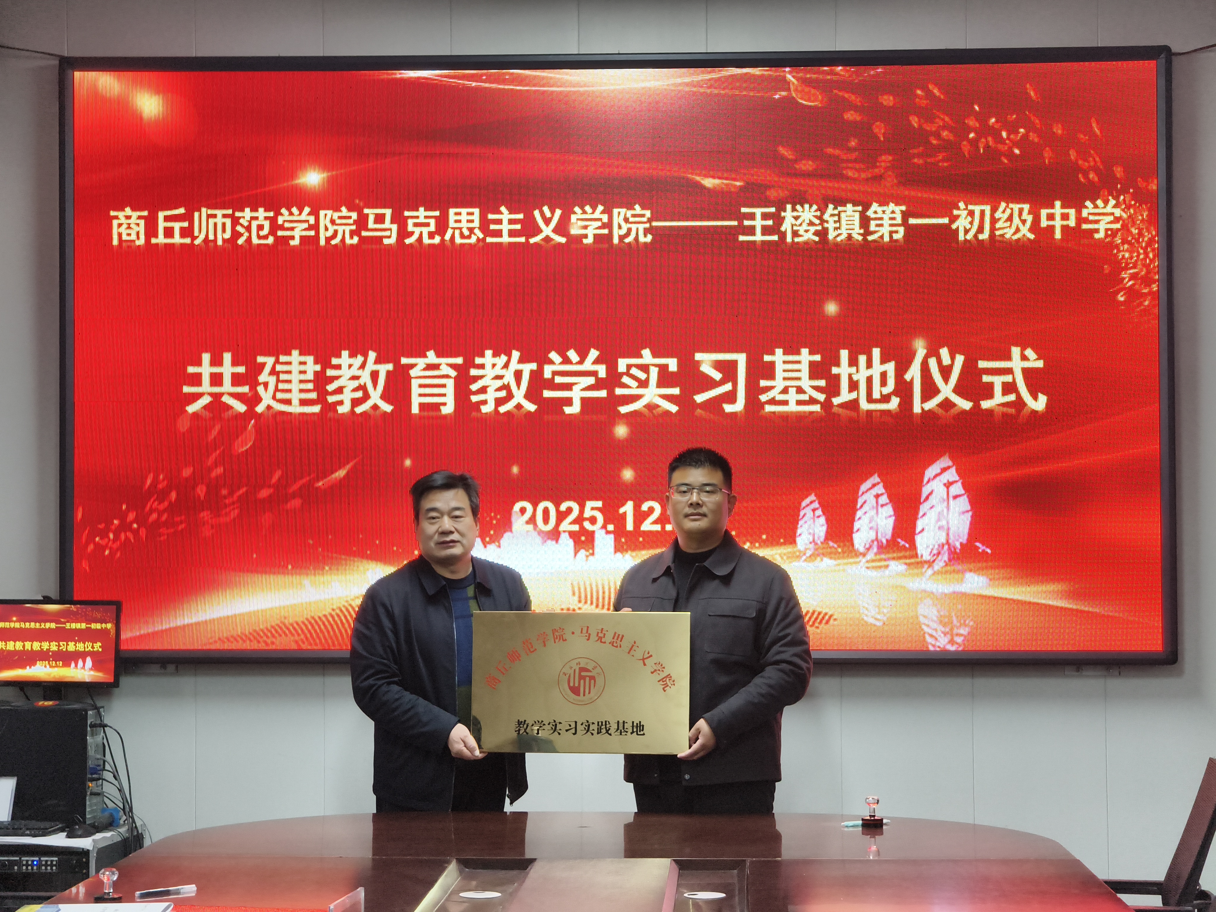 12月12日,beat365正版唯一官网在梁园区王楼镇第一中学正式挂牌成立教育教学实践基地。beat365正版唯一官网院长赵世锋、副院长丁亚仙以及教师代表薛明珠、陈淑鹏参加了此次活动。共建教育教学实践基地,搭建高校与中学的协同育人平台,推动大中小学思政课一体化建设,引导青年大学生在实践教学中深化对思想政治教育专业的认识,增强努力成为一名优秀思想政治教育工作者的使命担当。