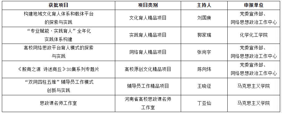 近日,中共河南省委教育工委、河南省教育厅办公室公布了2025年河南省高校思想政治工作质量提升综合改革与精品建设项目入选名单,beat365官网共有6个项目成功获批,获批项目类别、数量实现新突破,标志着beat365官网思想政治工作迈上新台阶。