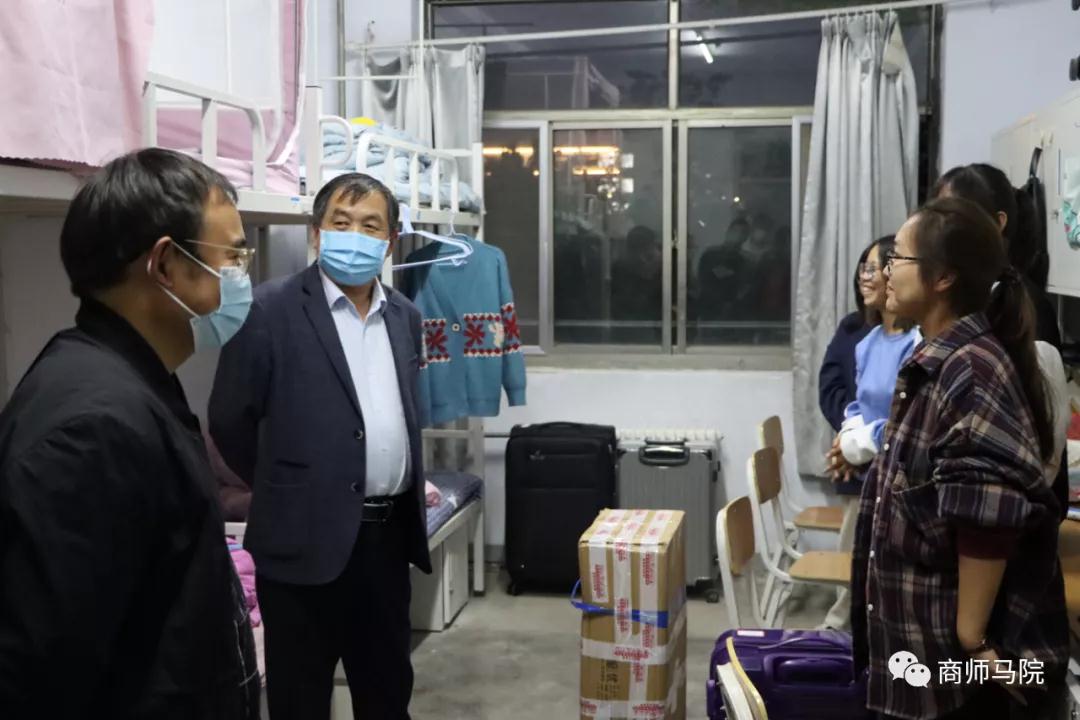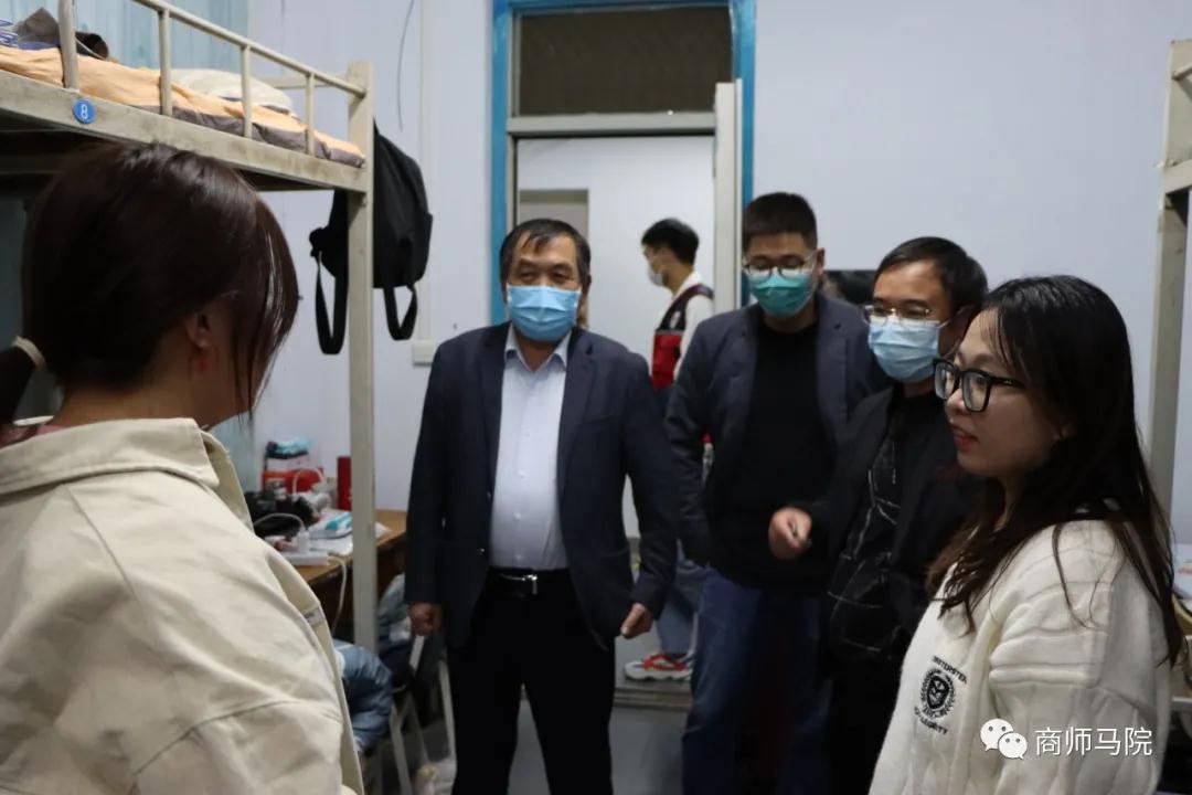 受新冠肺炎疫情影响,新生开学稍有延迟。为了了解寝室环境情况和学生居住情况,学院领导们在新生安顿好之后第一时间对2021级新生进行了寝室慰问。龚志宏与即将开始大学生活的同学们进行了亲切交流,鼓励新生积极融入新的大学生活并强调了疫情防控的重要性,要注意寝室和个人卫生。同时张文涛对同学们说有特殊情况要及时向学院和辅导员反映,学院会帮助同学们解决问题。同学们对学院领导和老师们的关心表示感谢,对即将开始的大学生活充满期待,表示将会以饱满的热情迎接即将到来的大学生活。