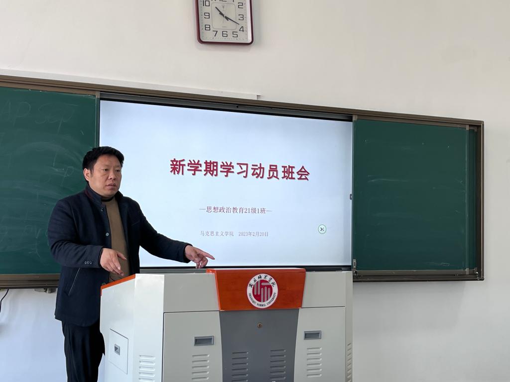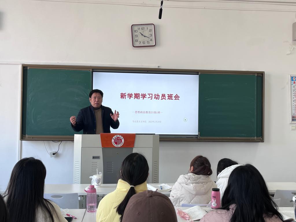 为引导广大学生以良好的心态和积极的精神面貌投入新学期的学习生活,确保新学期各项工作有序开展,2月20日,思想政治教育21-1班召开了新学期学习动员主题班会,班会由班主任薛明珠主持。