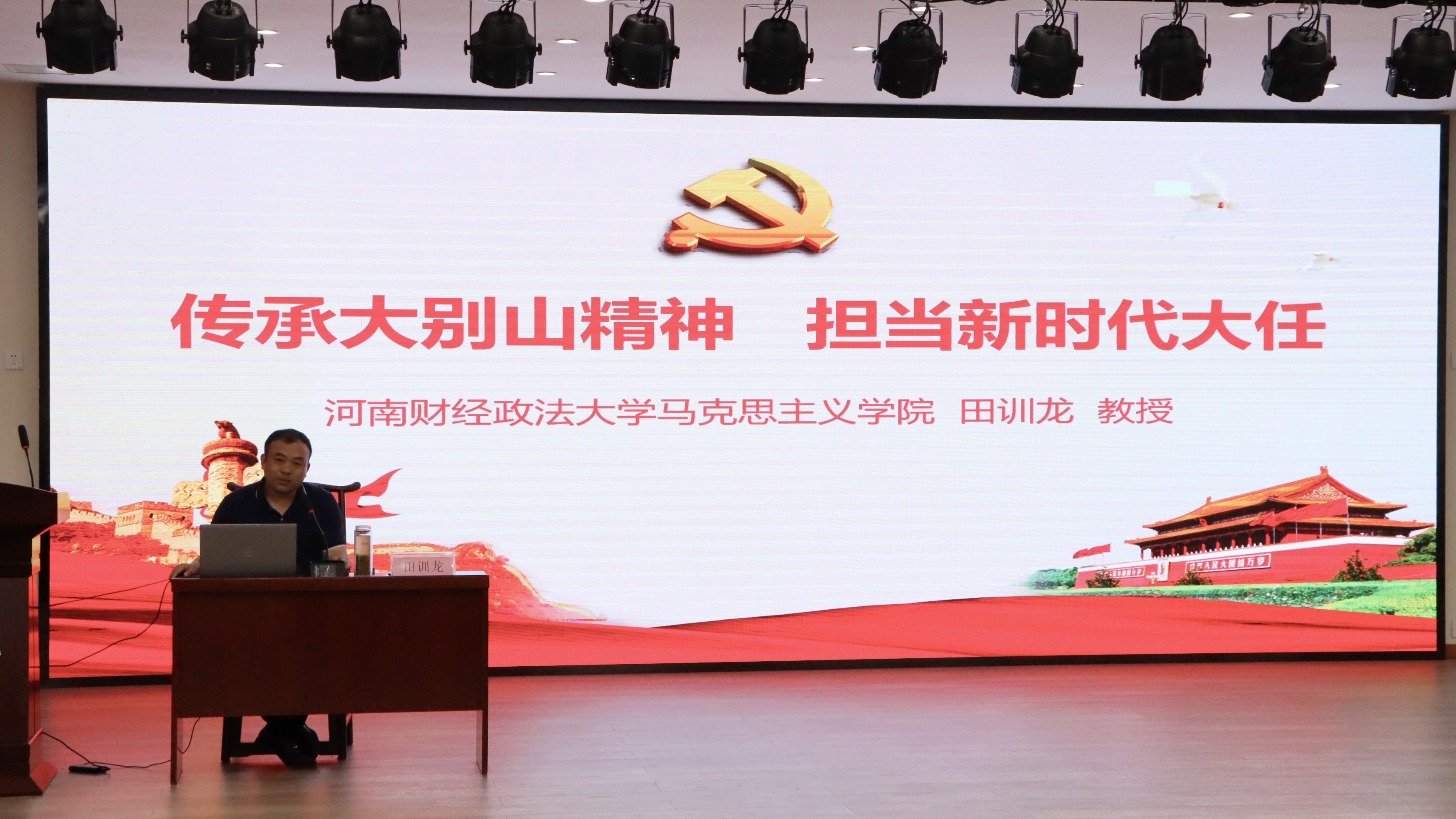 beat365正版唯一官网坚持全面贯彻党的教育方针,落实立德树人根本任务,将红色文化有效融入教学体系、实践体系、宣传体系,充分发挥红色文化立德树人、培根铸魂作用。此次青马红色文化节邀请河南财经政法大学beat365正版唯一官网院长田训龙教授作红色文化专题报告《传承大别山精神,担当新时代大任》。