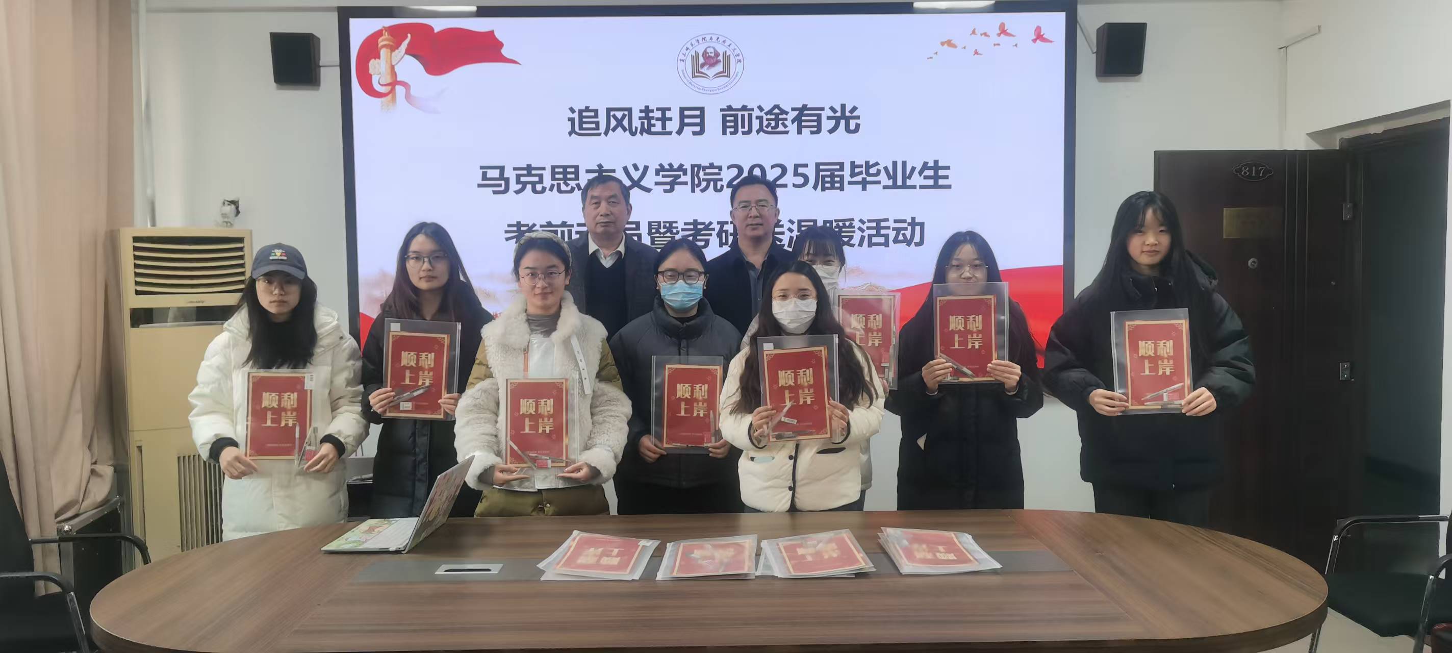 随后,学院领导亲自为考研学子发放考研加油包。