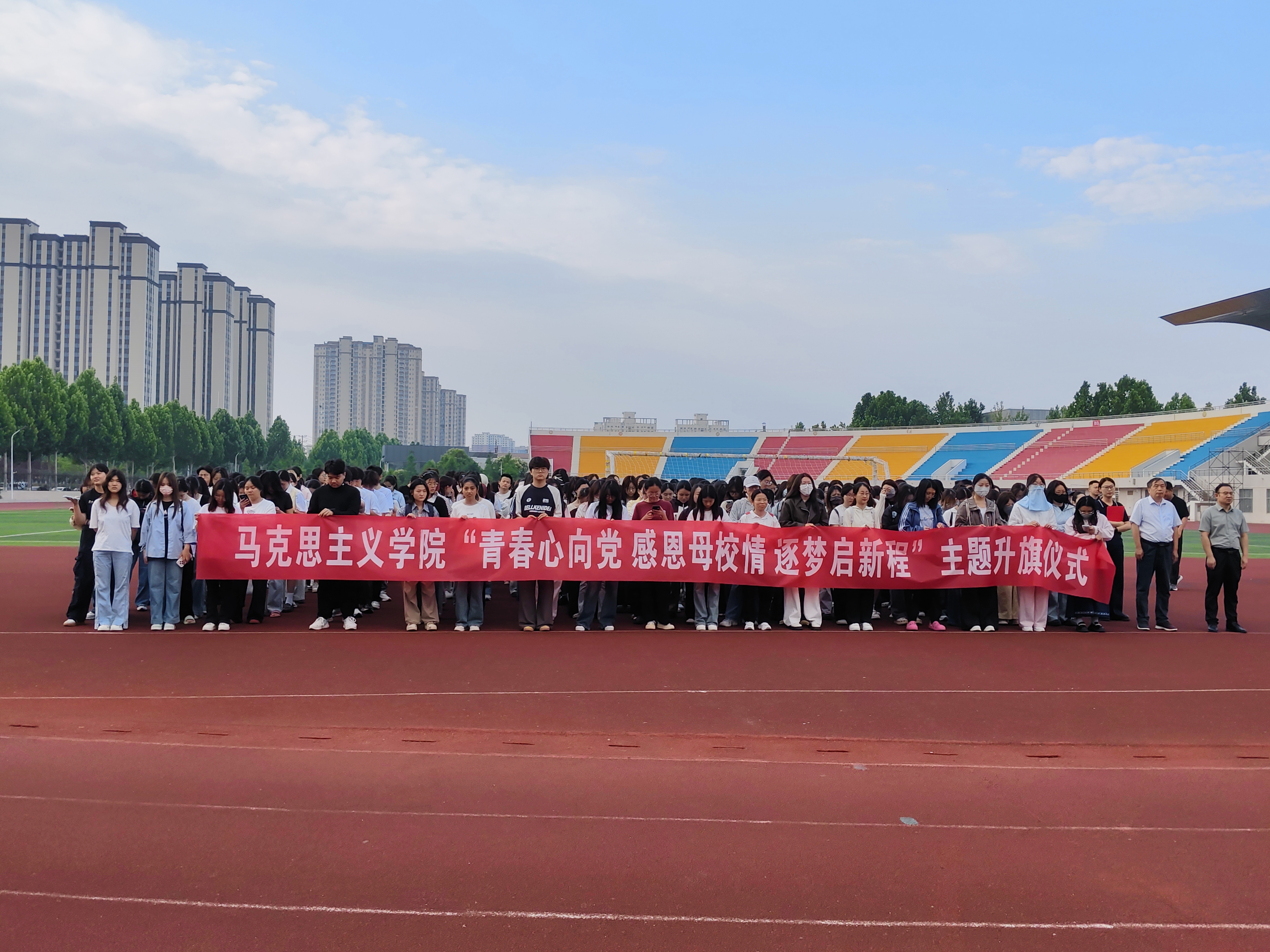 5月26日,beat365正版唯一官网在梁园校区体育场隆重举行“青春心向党 感恩母校情 逐梦启新程”主题升旗仪式。学院领导班子成员、全体师生共计500余人参加活动。仪式由beat365正版唯一官网党委副书记张文涛主持。