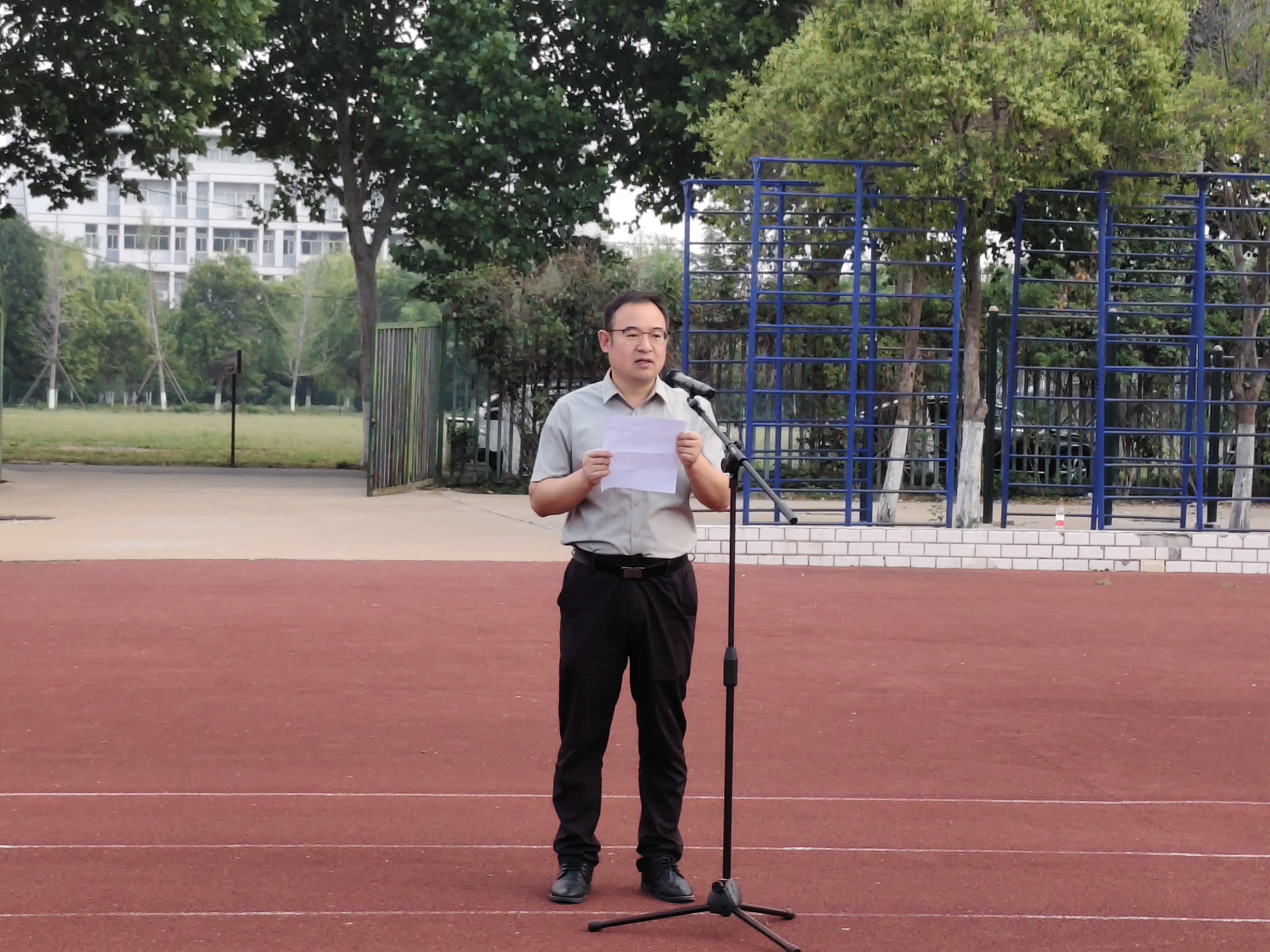 升旗仪式后,学院青年教师曹潇戈以"传承红色基因 担当复兴大任"为主题,在国旗下为师生带来一堂生动的微党课,代表学院向毕业班的同学提出三点希望:一是希望各位同学能够继续发扬商师博大、厚重、睿智的大学精神,在厚植理想信念上做好人生的“加法”。二是希望各位同学能够践行“应天归德 智圆行方”的校训,做好人生的“减法”与“除法”。三是希望各位同学永葆奋斗之热忱,在爱党爱国、爱校荣校中做好人生的“乘法”。