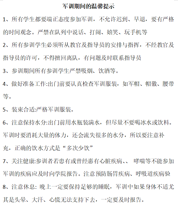 黄登科对即将开始的军训做了安排,特别强调了安全、纪律和作风等工作的重要性,对各班做了针对性的安排,并发布了“军训期间的温馨提示”。