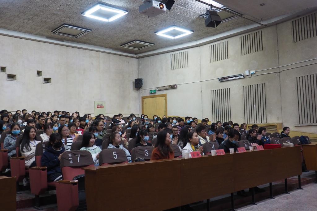 副院长、党总支副书记赵铁成代表学院对上一届学生会在疫情防控背景下所取得的工作成绩给予了高度肯定,并对新当选的学生会成员表示祝贺。他对新一届学生会的成立提出了三点希望,一是希望认真学习习近平新时代中国特色社会主义思想,带头践行社会主义核心价值观。二是本着锻炼自我的心态,严格自律,团结一致,服务同学;三是发挥好学院与同学间的桥梁纽带作用,积极为学院和谐发展做出新贡献。始终做到“高高山顶立,深深海底行”。