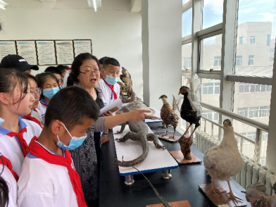 两班学生在3个标本室间轮流参观。对大多数学生来说,许多常见的鸟类、爬行类和哺乳类动物的形态是他们第一次近距离观察。栩栩如生的生态标本激发了同学们的极大兴趣,接连不断的提问使张敏老师应接不暇。张老师一直从事动物形态及分类学的教学与科研工作,对标本室涉及的大部分生物生活习性了如指掌,她用通俗易懂的语言耐心的给同学们讲解典型动物的奇闻趣事,同学们不但增长了生物学知识,感悟到生命的奥秘和多样性,也增强了保护生态环境动物的社会责任感。
