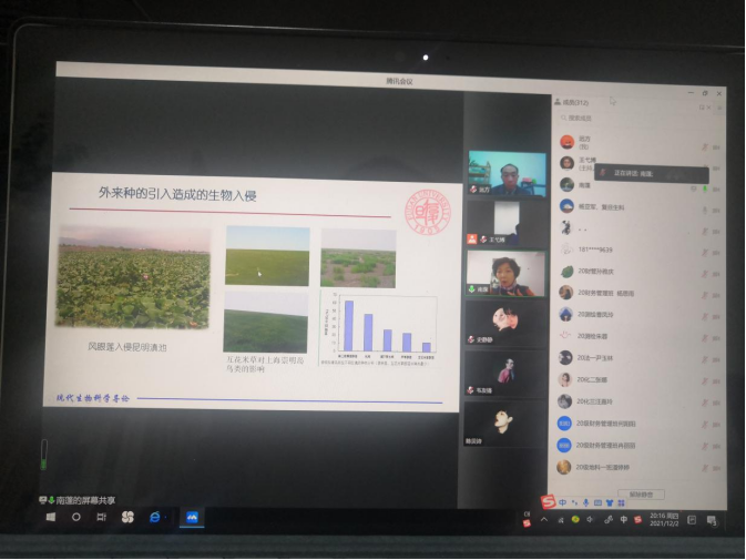 2021年12月2日晚,利用腾讯会议,复旦大学生命科学学院副教授南蓬博士做了题为“生物多样性的研究与保护”的辅导报告。报告由复旦大学杨亚军教授和新葡官网王弋博教授主持,来自全校10余个学院的320多名师生参加了报告会。