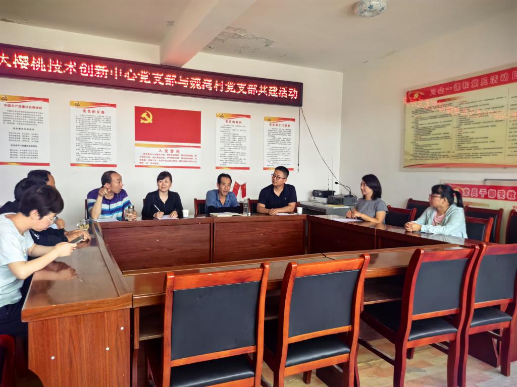 2024年7月19日甘肃省大樱桃技术创新中心党支部与秦安县魏湾村党支部开展了“科技赋能农业,助力乡村振兴”支部共建活动,旨在通过技术交流与合作,推动秦安县魏湾村特色产业发展,促进农民增收致富。甘肃省大樱桃技术创新中心党支部、3003新葡官方网站驻村帮扶工作队队员与魏湾村支委和党员参加了会议。
