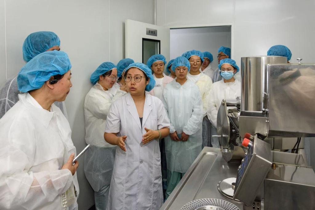 参观学习第二站是甘肃广药白云山中药科技有限公司,该公司是广州医药集团有限公司下属全资子公司,是全球500强大型现代化科技型中药生产企业。公司负责人为师生们详细讲解了公司目前的基本情况、主要优势生物产品及未来的发展规划,并且带领大家GMP药厂车间及生产线,师生们近距离接触世界500强企业的运营理念。