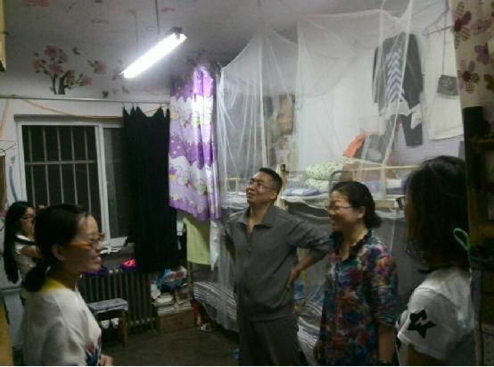 在检查过程中,霍存福书记亲切的询问了同学们的学习生活情况,对安全卫生较好的代表宿舍进行了表扬,卫生稍差的代表宿舍提出了批评意见。