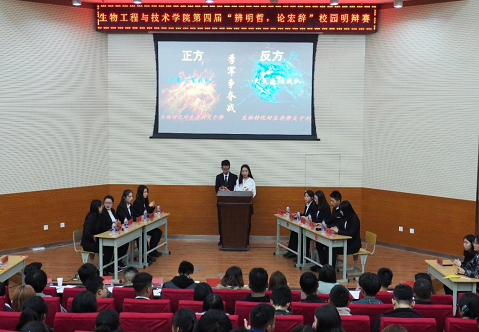 辩论赛分为两场,辩题分别为“生物特化对生存的利弊”和“科技发展使人类更坚强还是更脆弱”。每场比赛分为开篇立论、攻辩环节、盘问总结、自由辩论、总结陈词、观众提问等六个环节。赛场上的辩手们,有的机智幽默、举止大方;有的滔滔不绝,出口成章;有的沉着稳重,颇具大将风范;也有的机智活泼,嬉笑怒骂皆成文章,让观众们大饱耳福。经过激烈的辩论,“一支队”战队获得冠军,“尔雅”战队获得亚军,“口事心飞”战队获得季军,“火炎焱燚”战队获得优秀奖。现场评委为各个战队颁发荣誉证书。