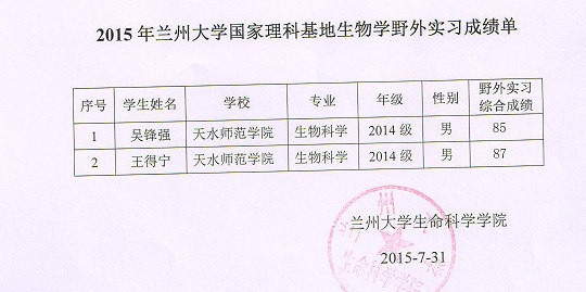 7月14-8月1日新葡官网派遣汪之波老师带领生物科学12级二班学生王得宁和吴锋强参加了由兰州大学生物学国家基础科学研究与教学人才培养基地组织的生物学联合野外实习,现将实习的整个过程总结如下: