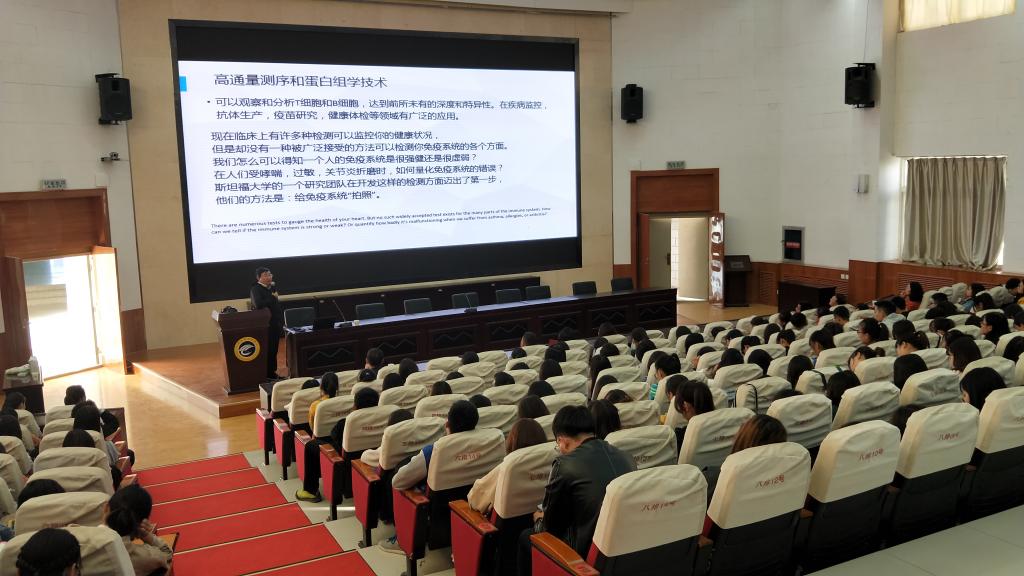 段小波博士根据近年来颁布的诺贝尔奖获得者研究的抗体,对免疫系统的定义作了较全面的线性梳理,随后用大量图片、数据、事例讲述了抗体的发现历程、人类在抗体方面做过的探索及现代研究抗体方面所面临的主要挑战,介绍了抗体的研究过程和现代高通量测序技术。段小波博士通过个人经历讲述了广州康合生物的纳米抗体开发平台,分析了传统抗体药存在的问题,展示了纳米抗体研发的流程和当前的产品线。最后,段小波博士与新葡官网师生进行了互动交流。