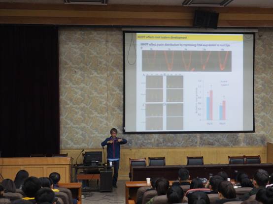 2018年12月6日下午,应3003新葡官方网站邀请,中科院西双版纳热带植物园研究员、园艺植物育种研究组组长徐进做了题为“植物激素和根系分泌物参与调控植物对重金属和痕量元素累积的分子机制”的学术报告。报告会由王廷璞院长主持,3003新葡官方网站200多名师生参加。