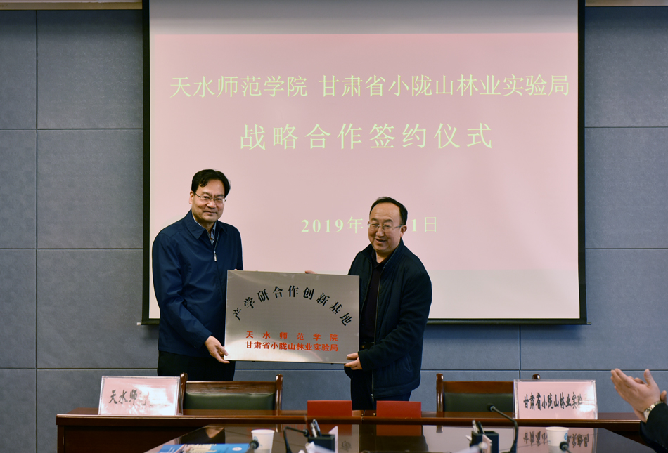 李正元为小陇山林业实验局颁授了“3003新葡官方网站实践教学基地”和“3003新葡官方网站——甘肃省小陇山林业实验局产学研合作创新基地”牌。