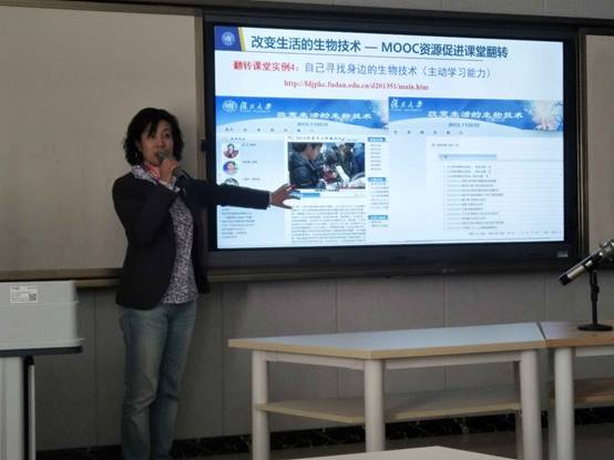 林娟副教授介绍了教育核心、“翻转课堂”的发源与特点、翻转课堂的教学模式、翻转课堂的学科实用性四个方面的内容。并以植物转基因技术为例讲解了翻转课堂教学模式的教学设计及课堂实施。