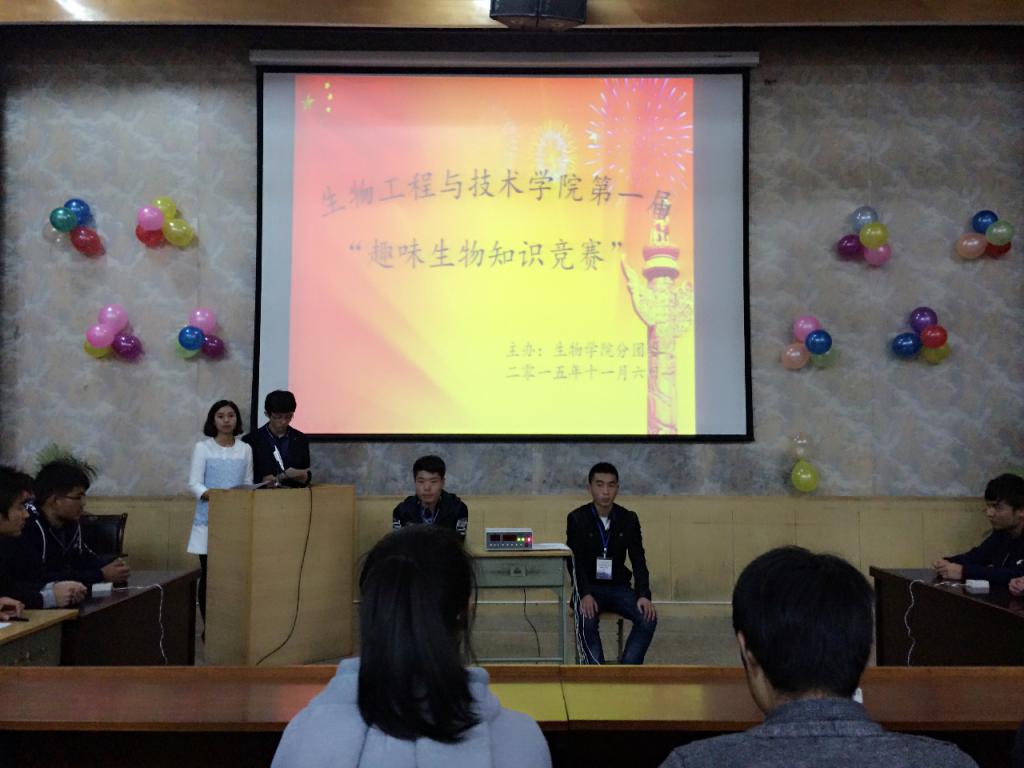 为了丰富校园文化生活,由新葡官网分团委主办,学生会承办的“3003新葡官方网站第一届趣味生物知识竞赛”于11月6日晚在二号报告厅隆重举行。新葡官网分团委书记杨金凤、辅导员姬静、特邀教师李娟娟、化工学院学生会主席何东城及新葡官网学生会主席马运青、李锐锐、石福磊及300多名同学观看了此次竞赛活动。
