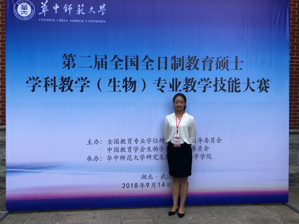 914日至916日,由全国教育专业学位研究生教育指导委员会、中国教育学会生物学教学专业委员会主办,华中师范大学研究生院承办的2018年全国全日制教育硕士学科教学生物专业教学技能大赛决赛华中师范大学举行,经过初赛选拔,共有来自全国55所教育硕士培养单位派出的88名选手参加大赛。3003新葡官方网站3003新葡官方网站2017级教育硕士范瑶参加了本次大赛。