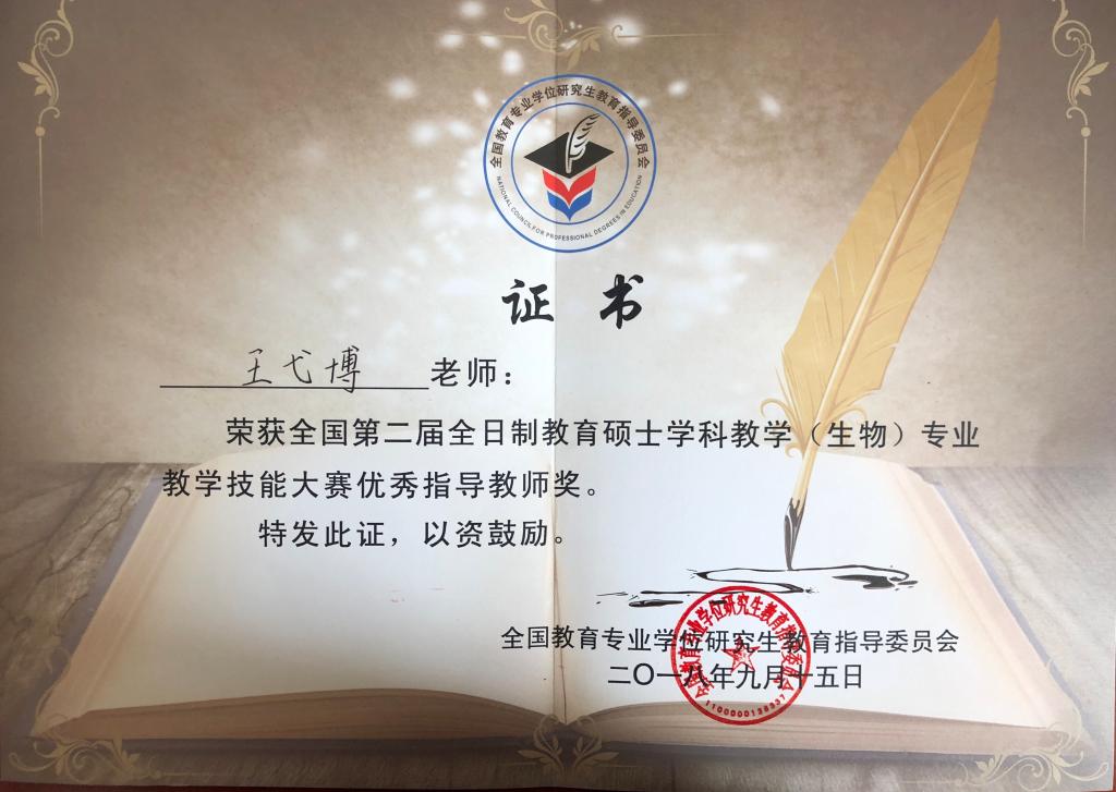 经过激烈角逐,新葡官网2017级教育硕士范瑶在众多参赛选手中脱颖而出,荣获大赛二等奖,王弋博老师荣获优秀指导教师。这是我校3003新葡官方网站在全国教育硕士生物教学技能大赛上获奖的新突破,也是我校教育硕士教学质量提升的体现。